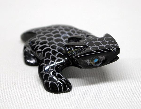 Native American Zuni Horned Toad Fetish by Shack, turquoise eyes, measures .5'' x 1.75'' x 1.5''. Buyers Pay Actual Shipping and Handling Charges(see terms and conditions for more information).