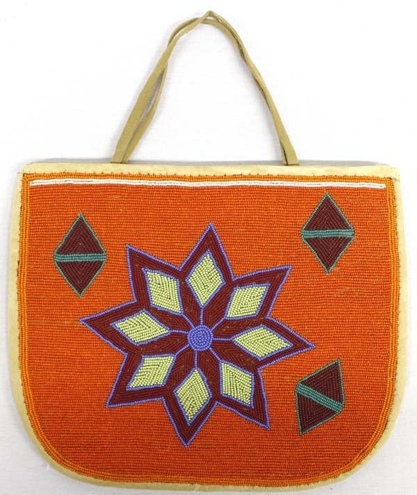 Native American Zuni Hand Beaded Doeskin Leather Purse, leather straps, measures 8.5'' x 10'', exquisitely beaded, gorgeous vibrant colors