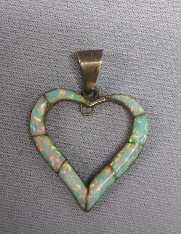 Native American Zuni Silver & Opal Heart Pendant, measures 1.75'' x 1''. Buyers Pay Actual Shipping and Handling Charges(see terms and conditions for more information).