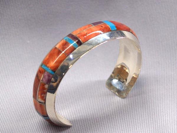 Native American Zuni Sterling Silver, Turquoise, Red Shell, Sugilite, Inlay Bracelet hallmarked BB, inside measures approx. 7'', 3/4'' width. Buyers Pay Actual Shipping and Handling Charges(see terms and conditions for more information)