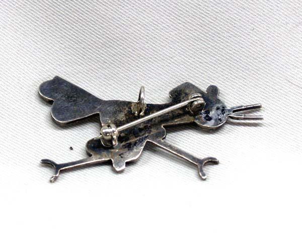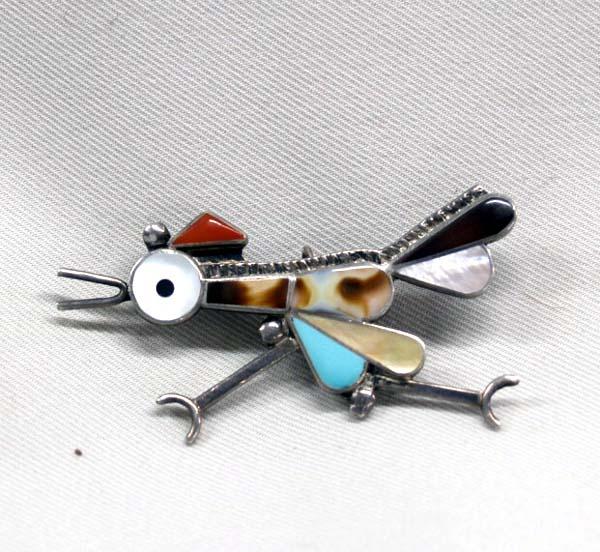 Native American Zuni Silver Inlay Roadrunner Pin/Pendant, turquoise shell MOP coral, jet inlay, measures approx. 2''L x 1''H. Buyers Pay Actual Shipping and Handling Charges(see terms and conditions for more information)