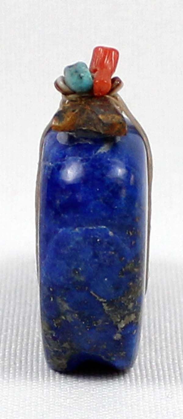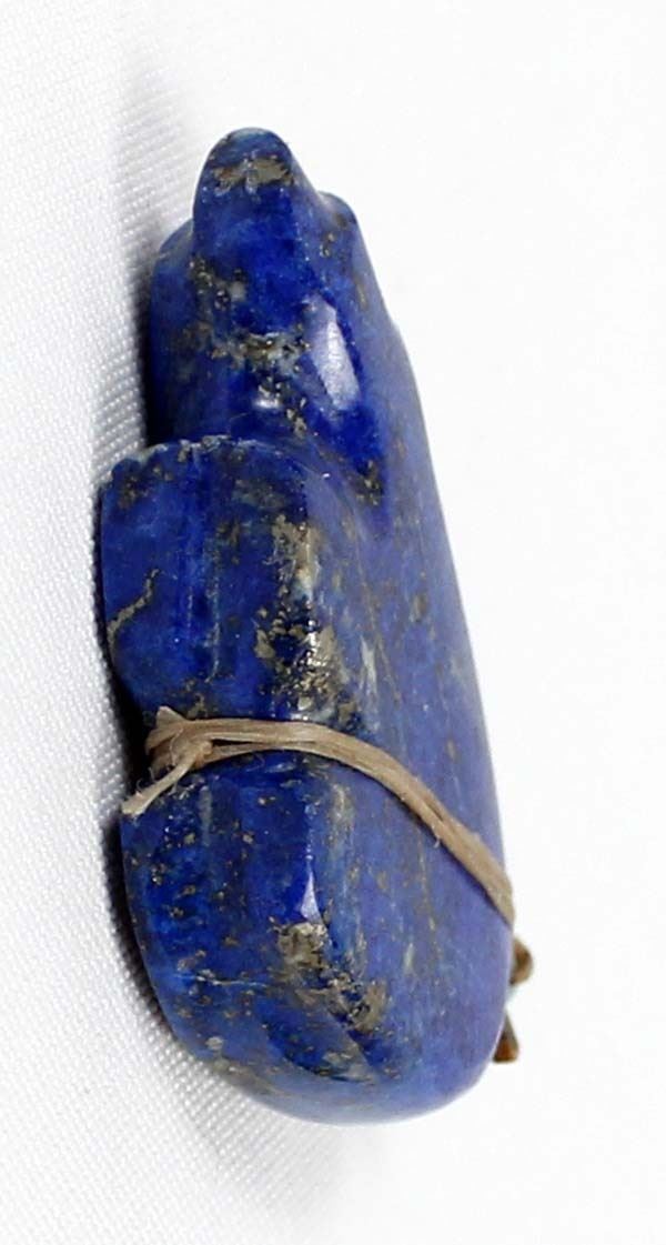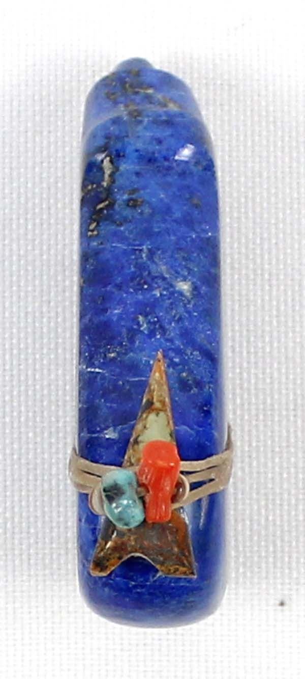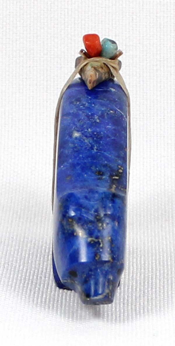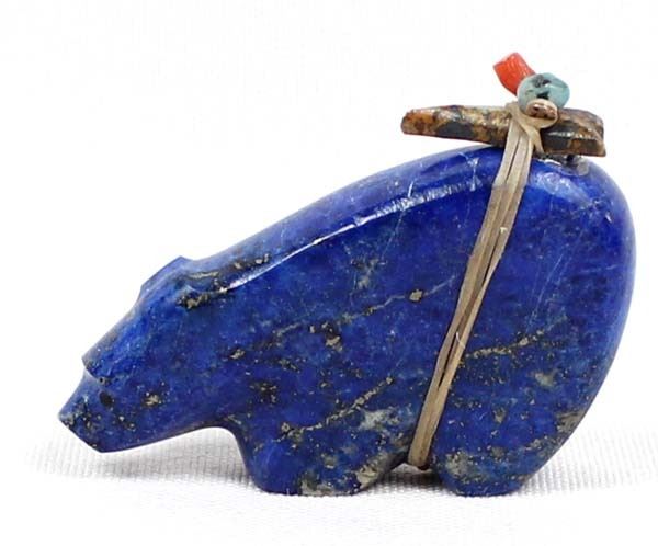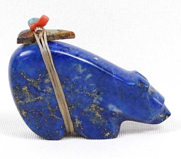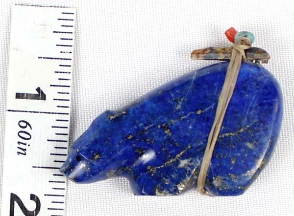 Native American Zuni Lapis and Pyrite Bear Fetish by Emery Eriacho, measures 2'' x 1'' x .25''