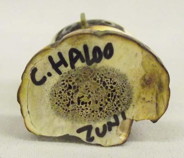 Native American Zuni Antler Owl Fetish by C. Haloo. 1.75'' H, 1.25'' diameter. Buyers Pay Actual Shipping and Handling Charges(see terms and conditions for more information)
