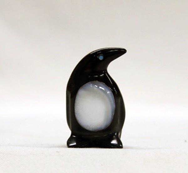 Zuni Penguin Fetish by Calvert Bowannie. Jet, MOP and Turquoise. Measures 1-3/8''x3/4''. Buyers Pay Actual Shipping and Handling Charges(see terms and conditions for more information).