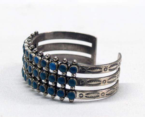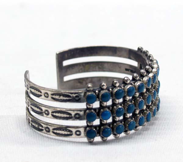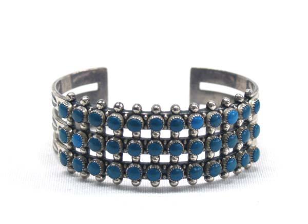 Native American Zuni Petit Point Silver Turquoise Bracelet, inside measures approx. 6'' x 1''W. Buyers Pay Actual Shipping and Handling Charges(see terms and conditions for more information).