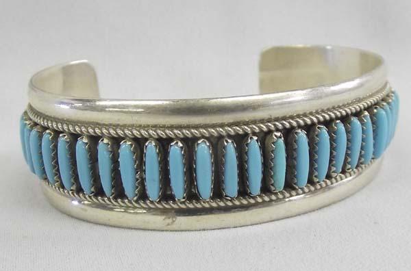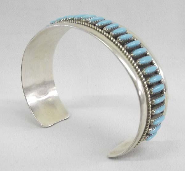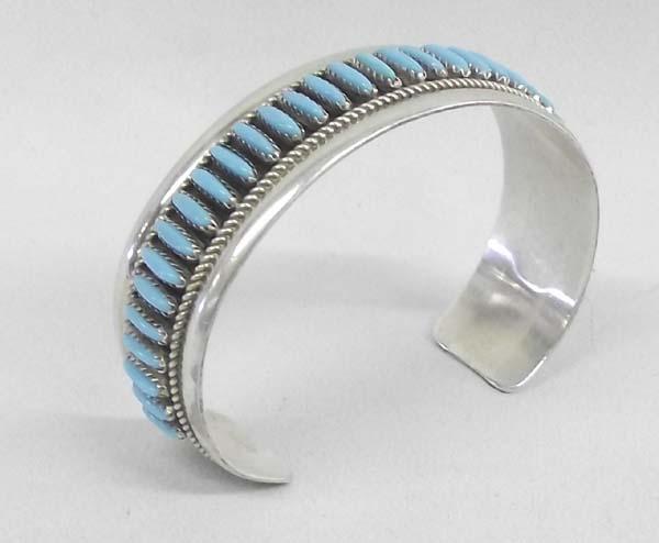 Native American Turquoise Sterling Silver Zuni Petit Point Bracelet hallmarked RB, inside measures approx. 7 3/8'' and 3/4''W. Buyers Pay Actual Shipping and Handling Charges(see terms and conditions for more information)