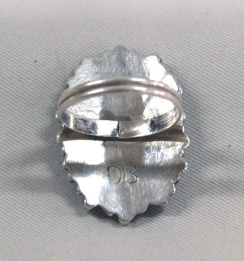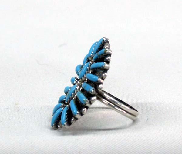 Native American Zuni Turquoise and Silver Petit Point Ring, size 10, hallmarked DB, 1 3/8''L x 1''W. Buyers Pay Actual Shipping and Handling Charges(see terms and conditions for more information)