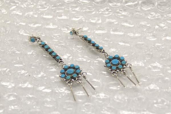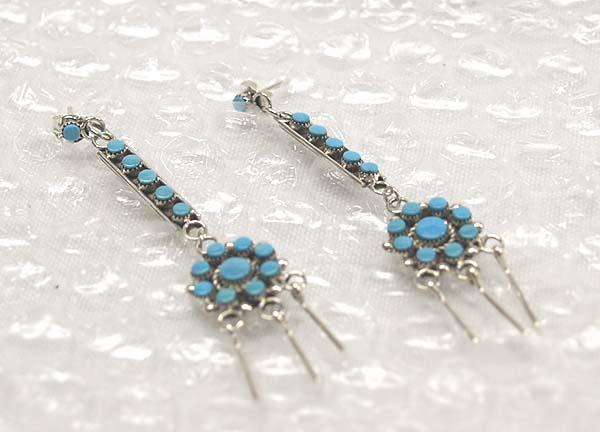 Native American Zuni Petit Point Silver & Turquoise Earrings, measures approx. 2.5''L x .5W. Buyers Pay Actual Shipping and Handling Charges(see terms and conditions for more information).