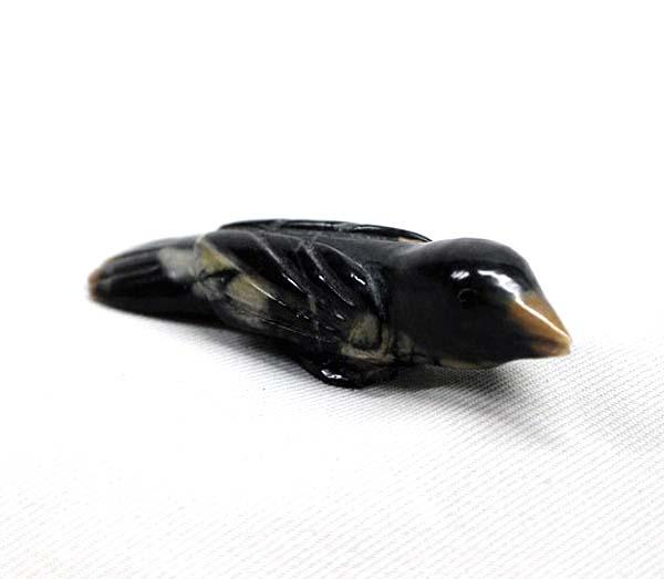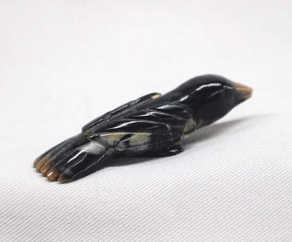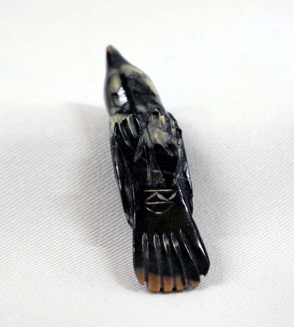 Native American Zuni Picasso Stone Raven Fetish. Hallmark on bottom, ''RD''. Measures 1.75'' long x 0.5''H. Has tiny chip on tip of beak. Buyers Pay Actual Shipping and Handling Charges(see terms and conditions for more information).