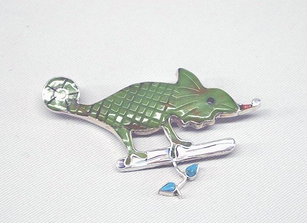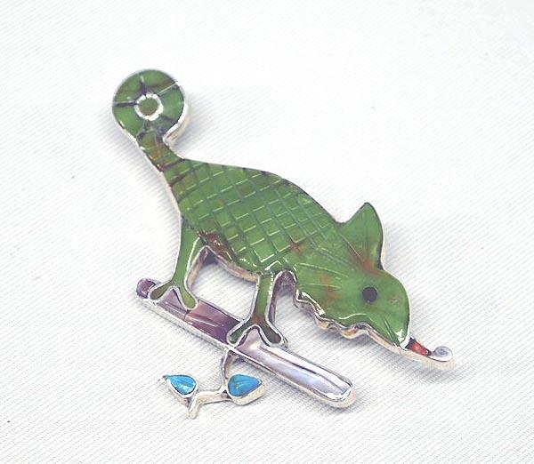 Native American Zuni Silver, Mother-of-pearl, Turquoise, Coral, Jet, Serpentine Chameleon Pin/Pendant by Valerie Comasoma, measures 1.25'' x 1.25''. Buyers Pay Actual Shipping and Handling Charges(see terms and conditions for more information).