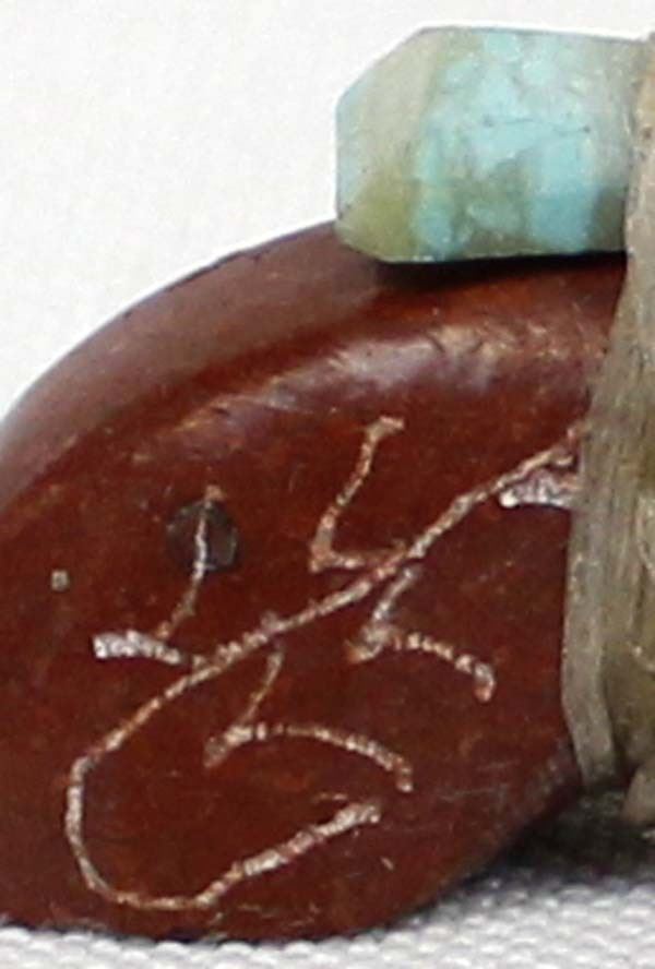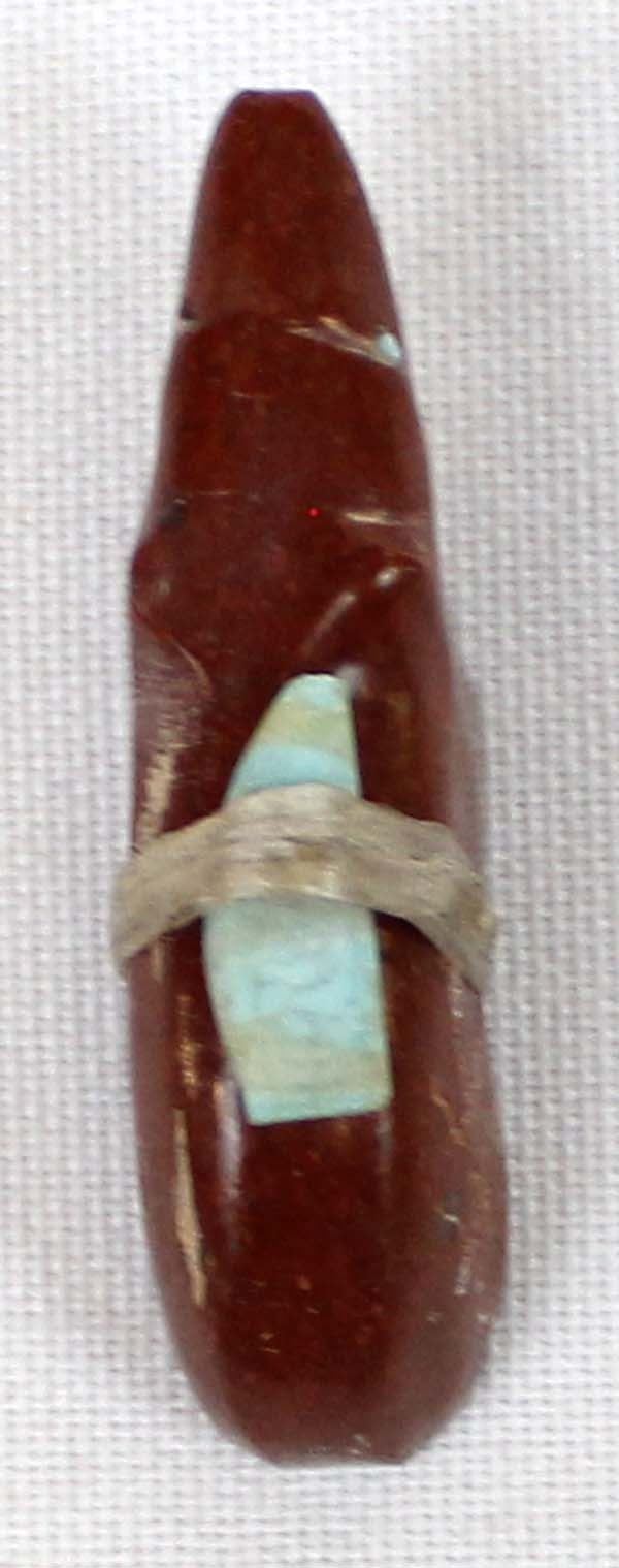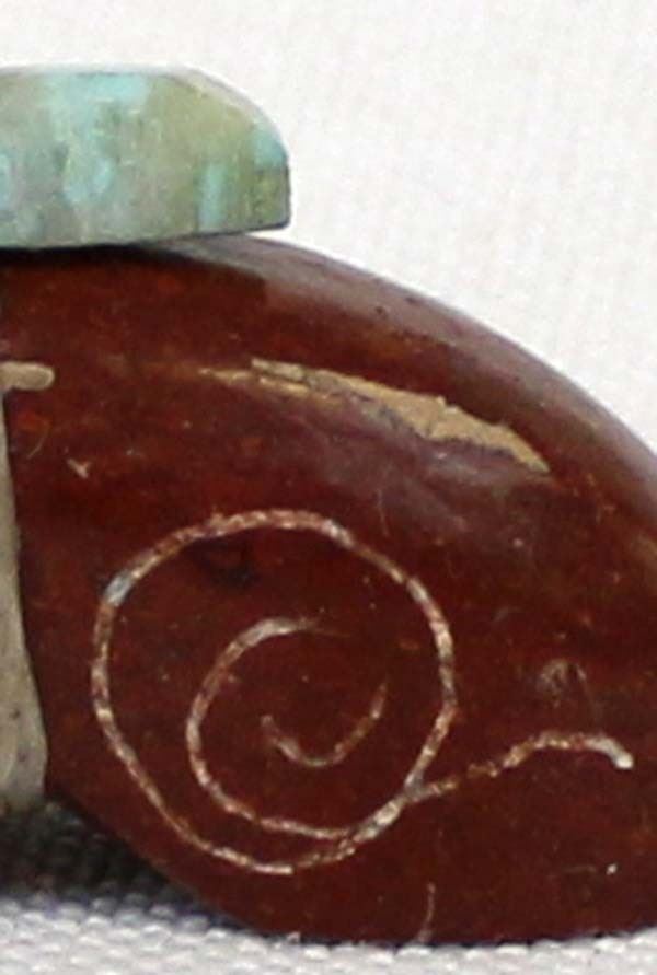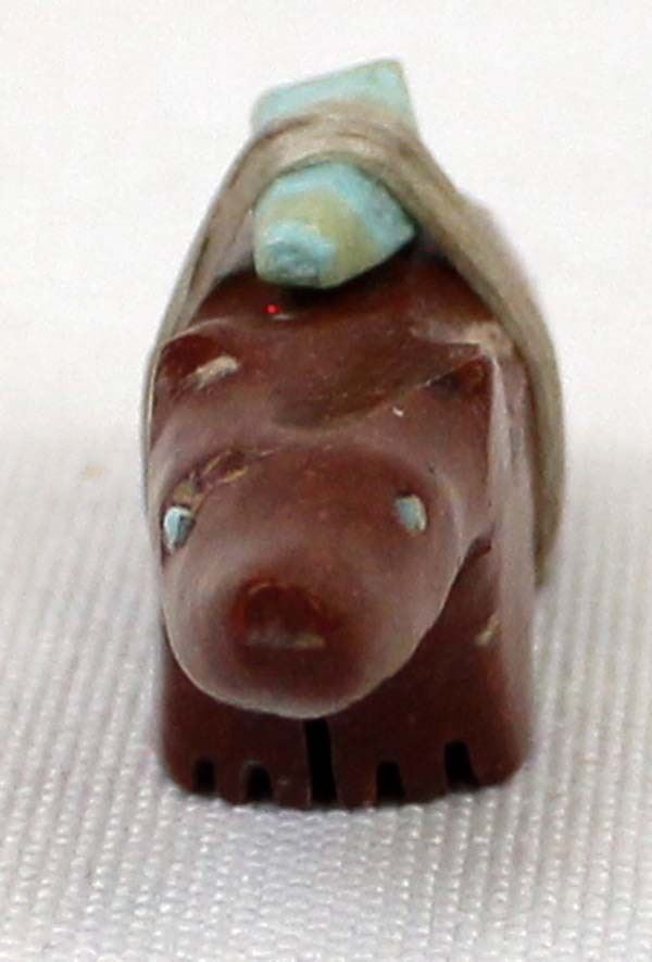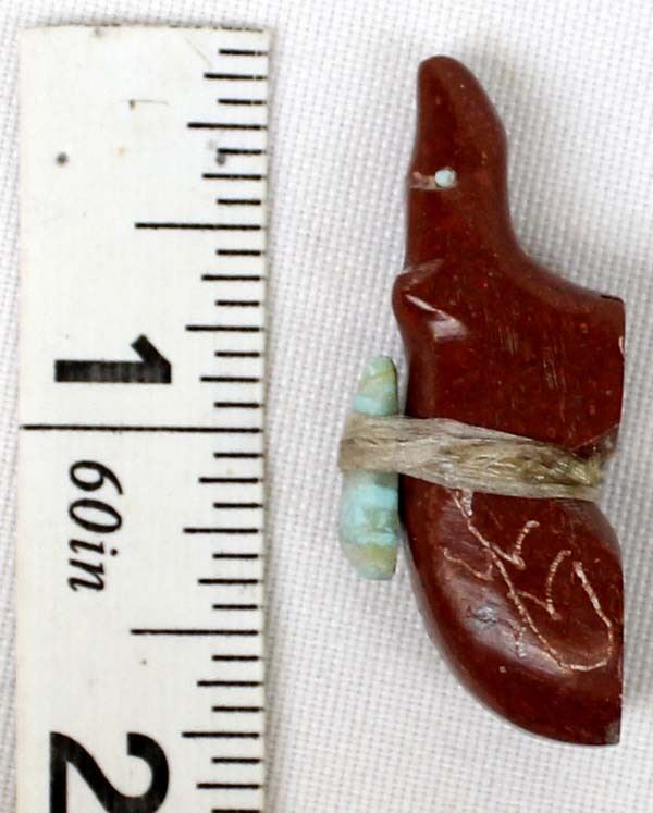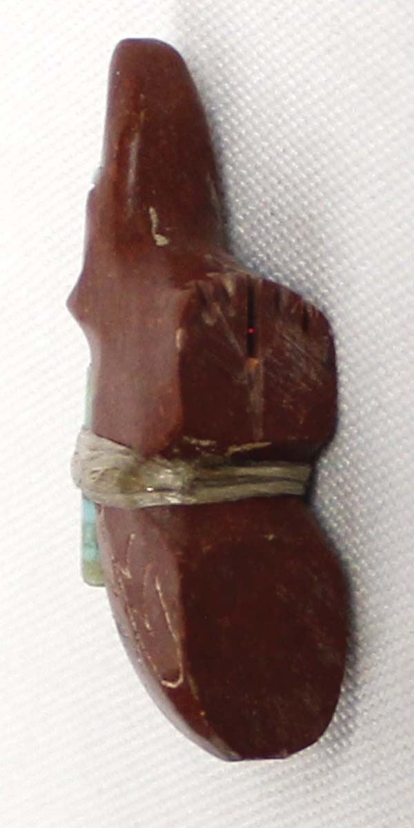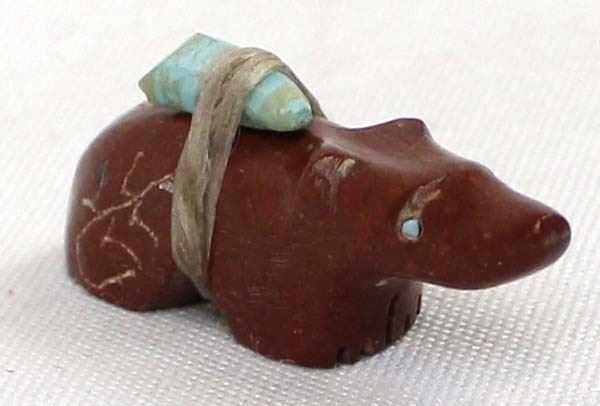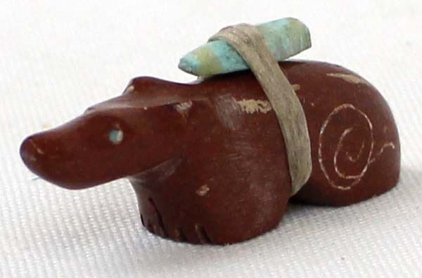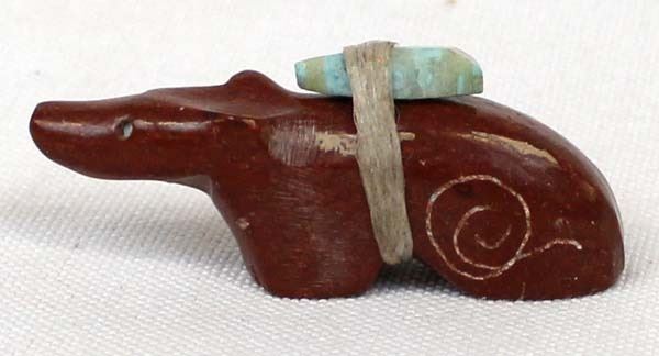 Native American Zuni Pipestone Fox Fetish, measures 1.75''L x .75''H x 3/8''W, sgraffito markings on both sides, turquoise arrowhead spirit bundle, unsigned