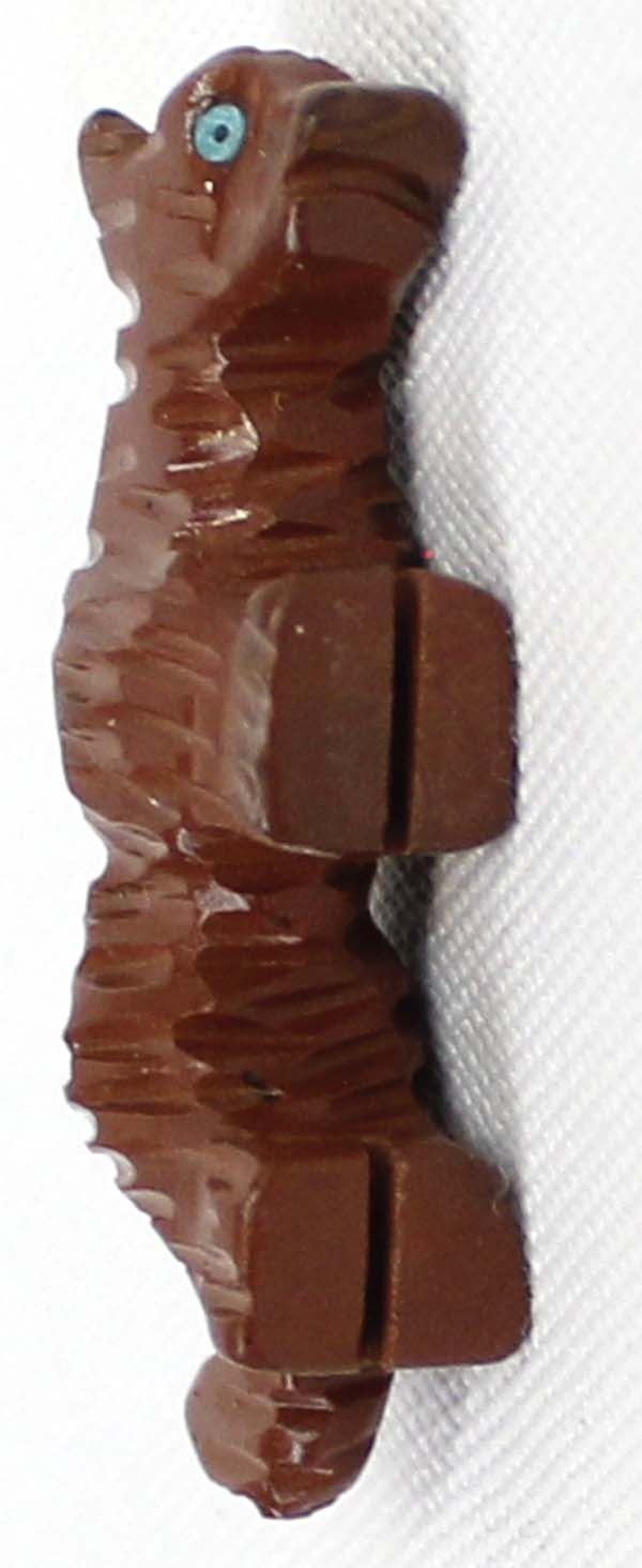 Native American Zuni Pipestone Wolf Fetish, measures 1.5'' x .75'' x 3/8'', turquoise bead eyes, possible artist Irene Reano or Davey Cooeyate