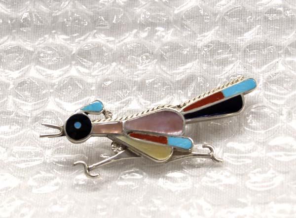 Native American Zuni Silver Inlay Roadrunner Pin by Nettie Tsethlakai, Turquoise, Jet, Shell, MOP, Abalone, & Coral, measures approx. 2 3/8''L x 3/4''W. Buyers Pay Actual Shipping and Handling Charges(see terms and conditions for more information).