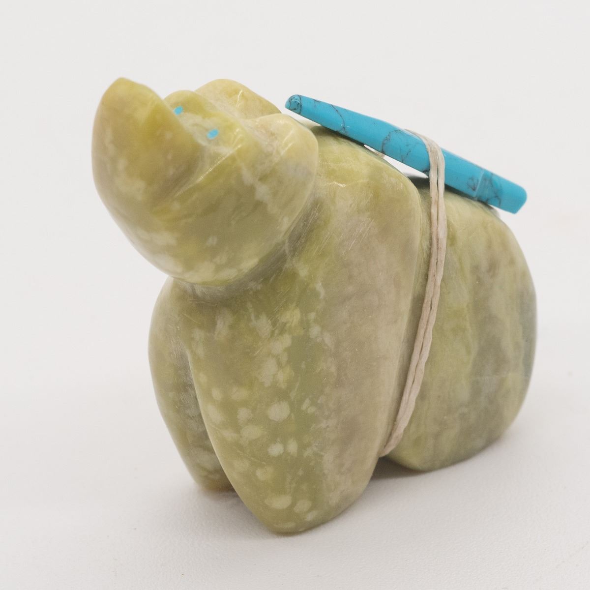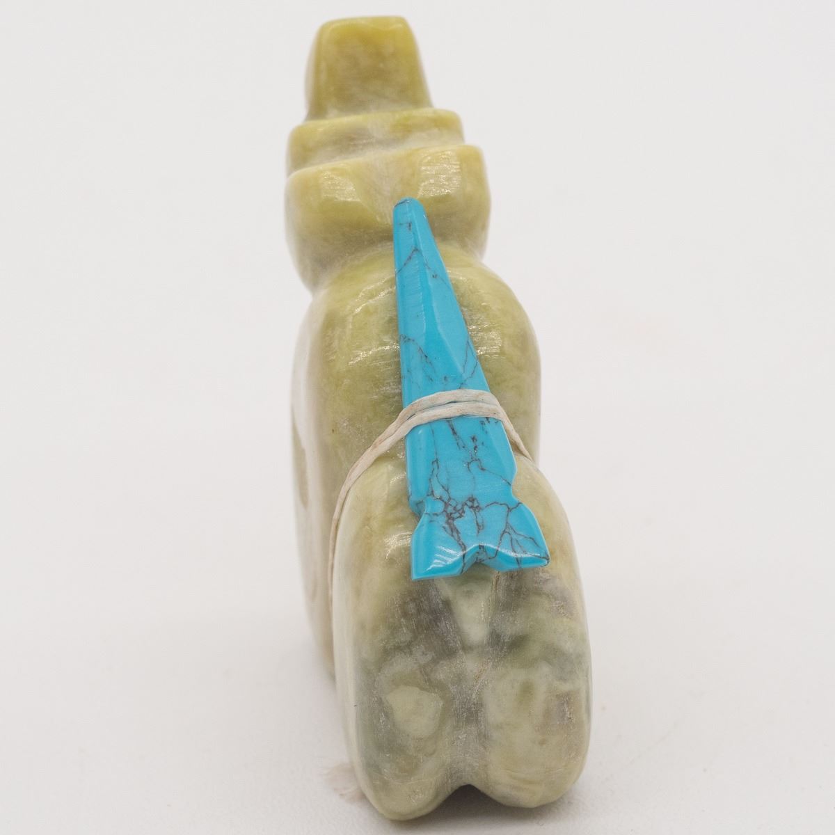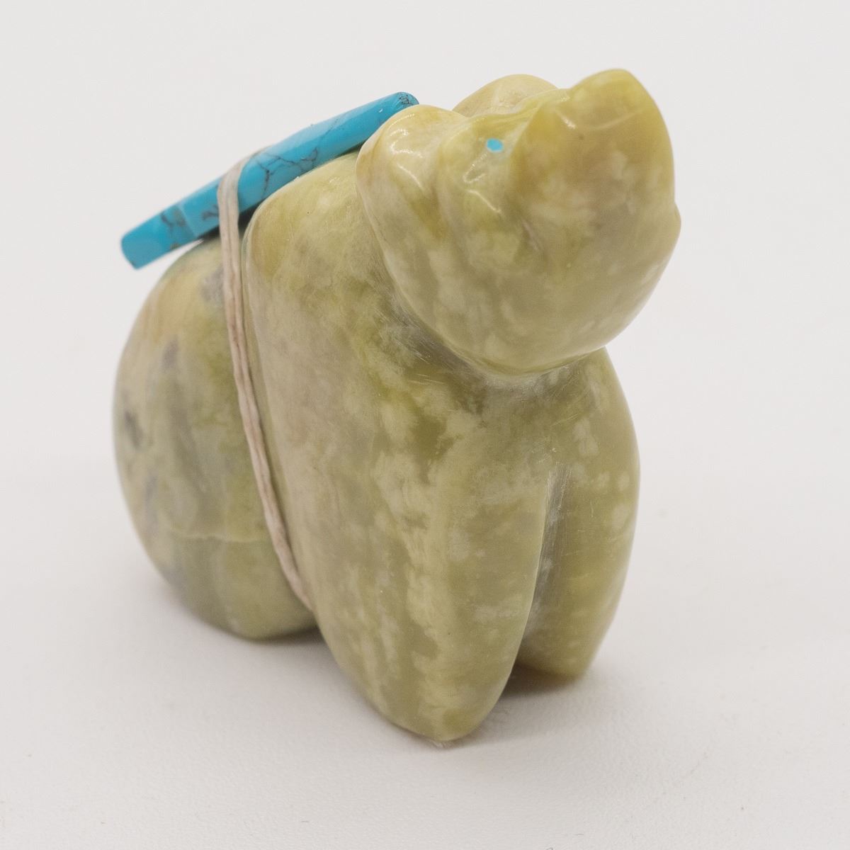 Native American Zuni Serpentine Bear Fetish, measures 2" x .5", carved turquoise arrowhead spirit bundle, possible artist Rosella Soseeah