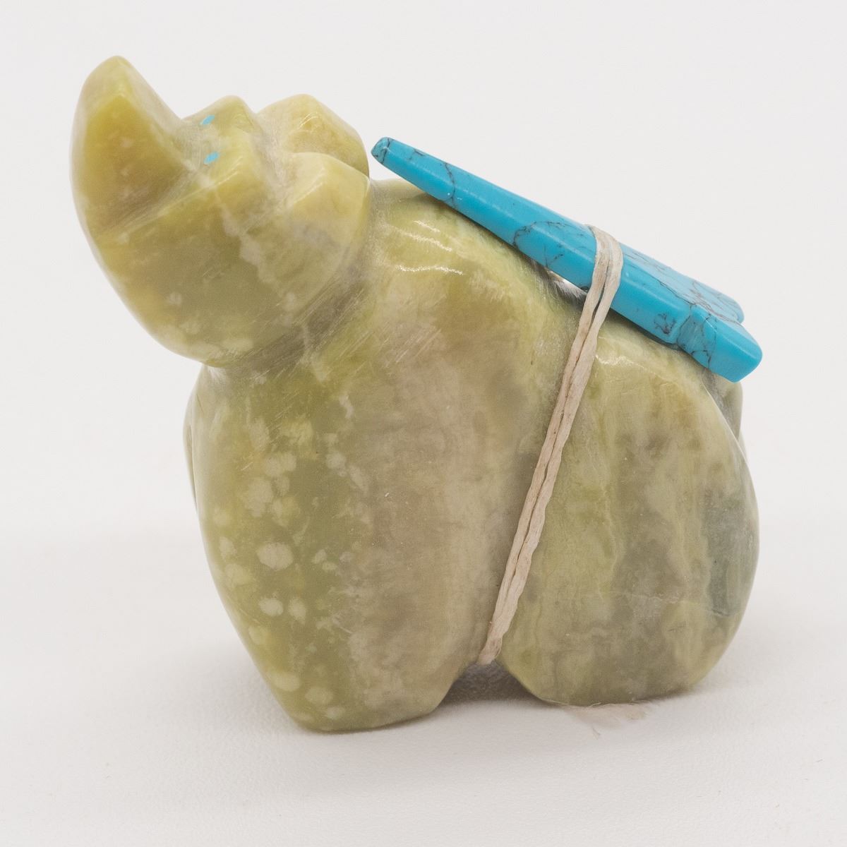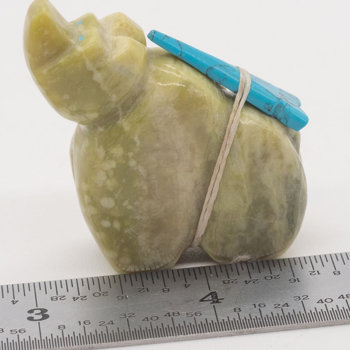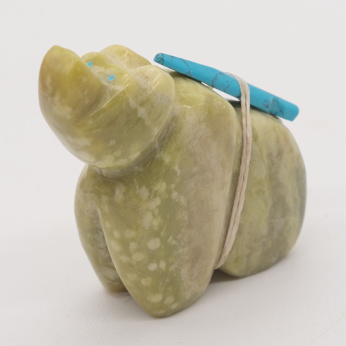 Native American Zuni Serpentine Bear Fetish, measures 2" x .5", carved turquoise arrowhead spirit bundle, possible artist Rosella Soseeah