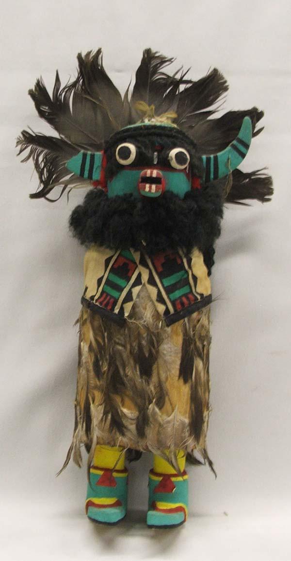 Vintage Zuni Shalako Kachina, has feather wear, and damage to one horn. Measures approx. 11 x 5''. Buyers Pay Actual Shipping and Handling Charges(see terms and conditions for more information)