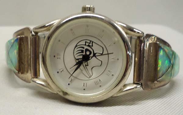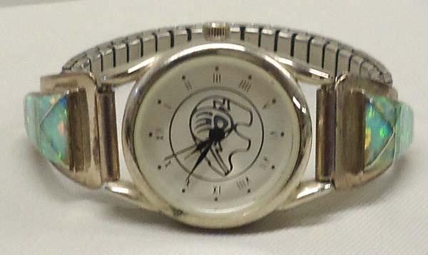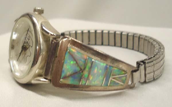 Zuni Silver Opal Watch Band With Hallmark, watch works. Flex band, watch tips measure approx. 1'' x 1/2''. Buyers Pay Actual Shipping and Handling Charges(see terms and conditions for more information).