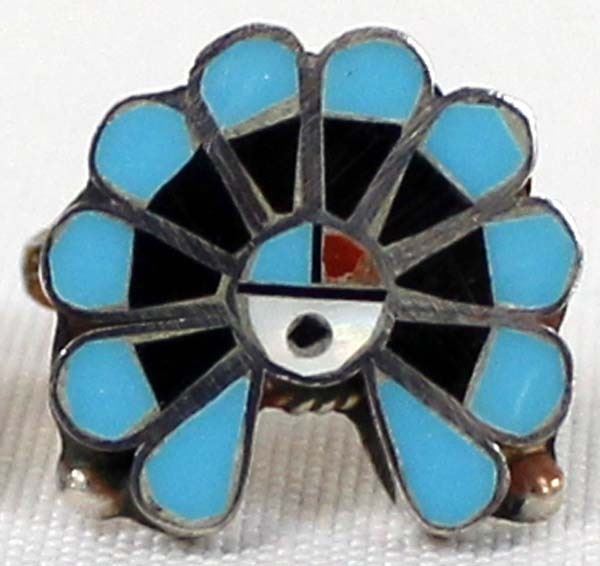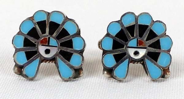 Native American Zuni Sterling Inlay Cufflinks, measure .5'' x .5'', inlay includes turquoise, mother of pearl, jet, and coral
