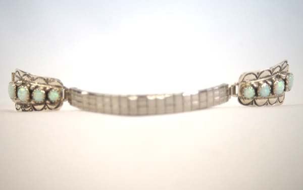 Native American Zuni Sterling Opal Watchband, hallmarked and stamped sterling, tips measure 1.25''L x .75''W