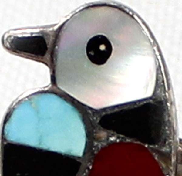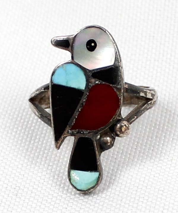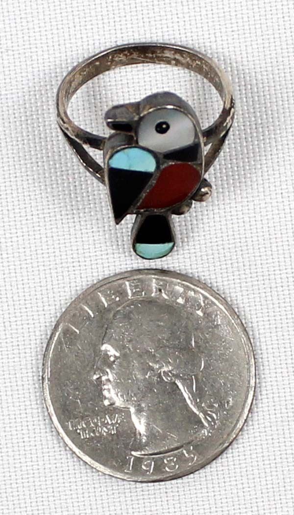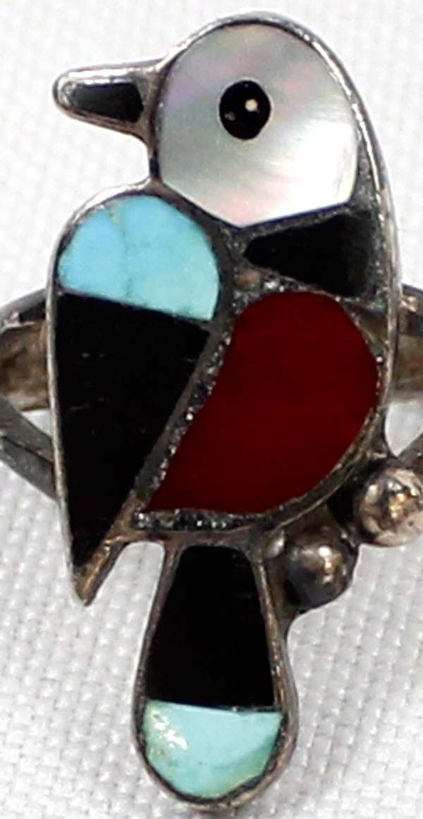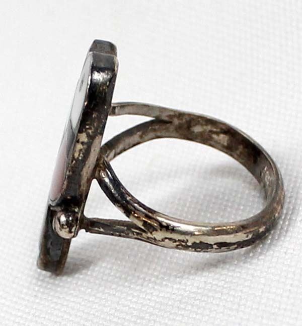 Native American Zuni Sterling Silver Inlay Ring, Size 6.75
