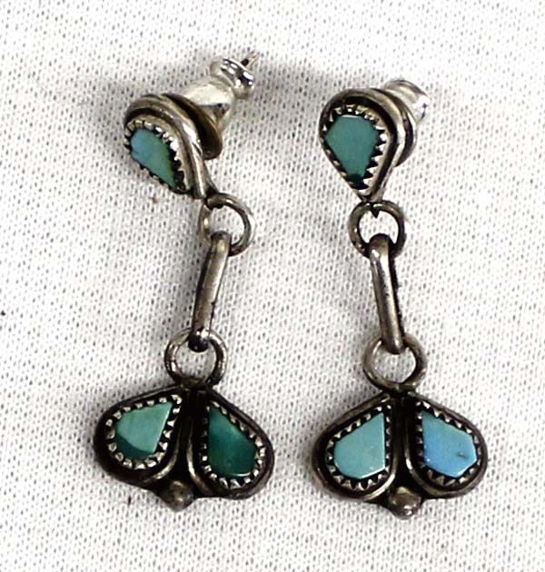 Native American Zuni Sterling Turqoise Earrings, measure .5'' x 1''