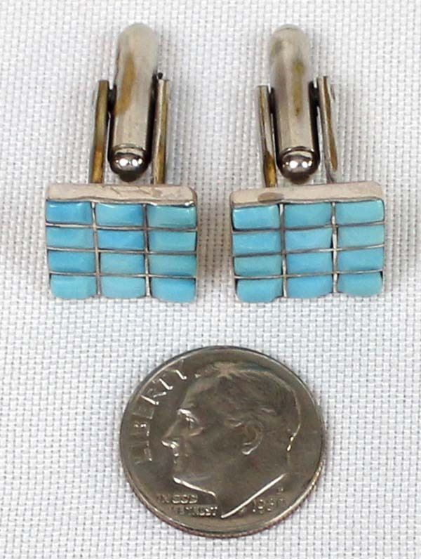 Native American Zuni Sterling Turquoise Cufflinks, measure .5'' square
