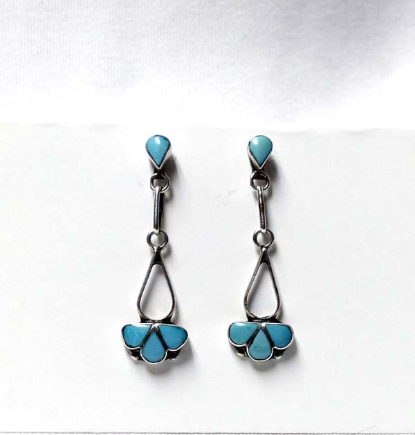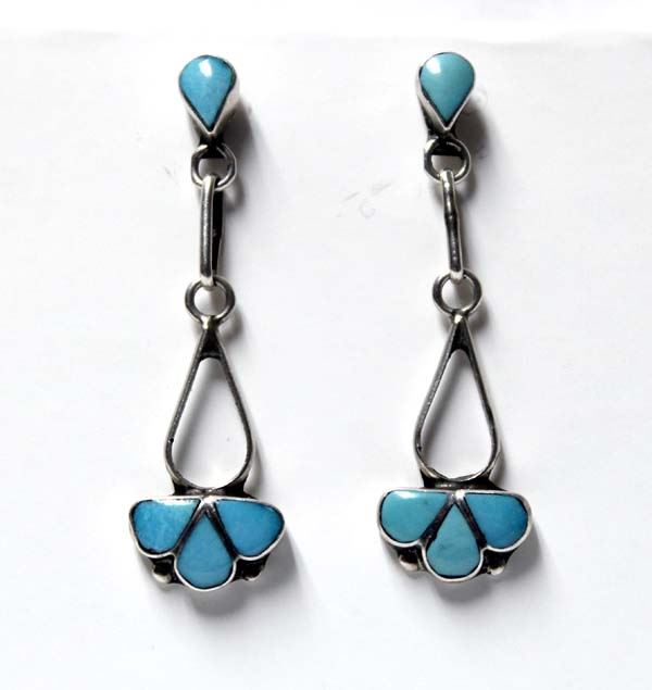 Native American Zuni Sterling Turquoise Earrings, measure 1.5''L, 3.4g in total wt.