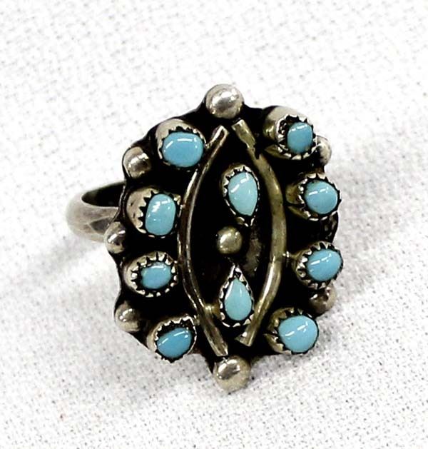 Native American Zuni Sterling and Petit Point Turquoise Ring, size 6.5, measures 1''L x .75''W
