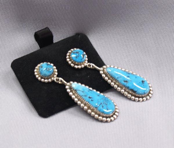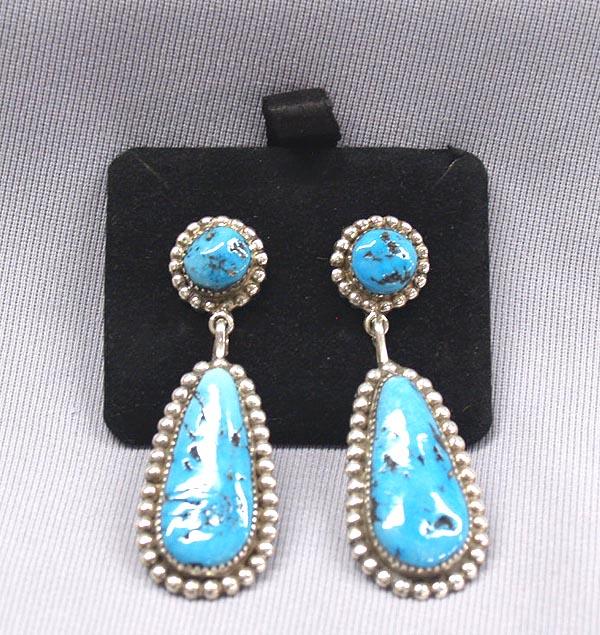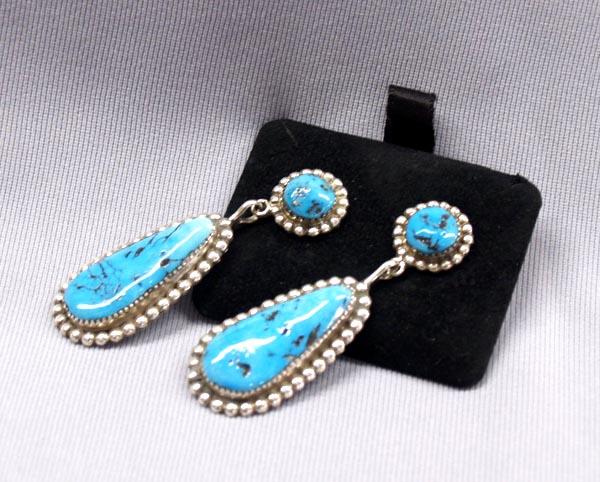Native American Zuni Silver Turquoise Earrings by Robert & Bernice Leekya, 2 stones/earring, measures approx. 2 5/8''L x 7/8''W, largest stone measures 1.5'' x 5/8''. Buyers Pay Actual Shipping and Handling Charges(see terms and conditions for more information)