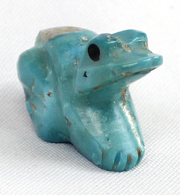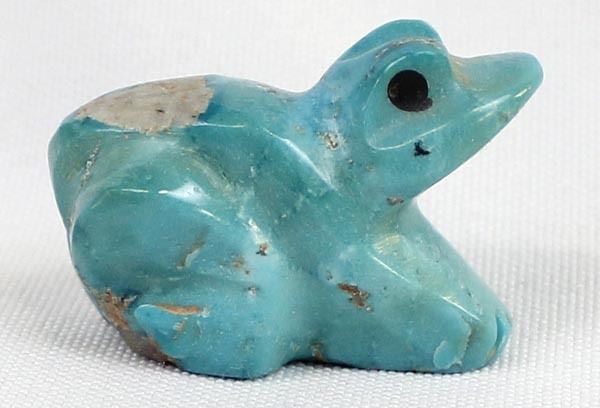 Native American Zuni Turquoise Frog Fetish, measures .5'' x 1'' x 1.5'', possible artist Della Haloo