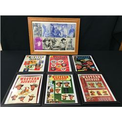 There is a framed collage of 10 different cowboy trading cards from circa the 1940s (frame is 20” X 14.5” and under glass). There are also 6 different