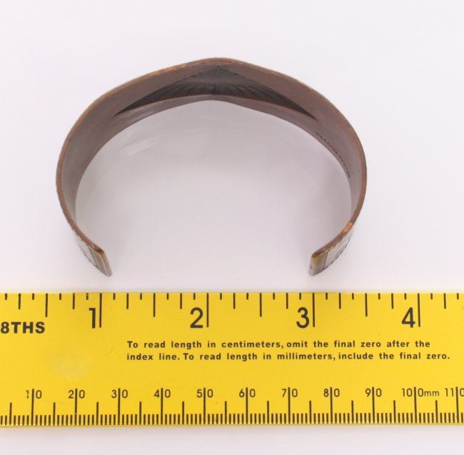 Native American copper bracelet. SIZE: see attached ruler photo. Photos are part of the description representing the condition report and can be used for authentication prior to the sale date. Pangaea Auctions urges Bidder's to view all attached photos in detail.