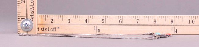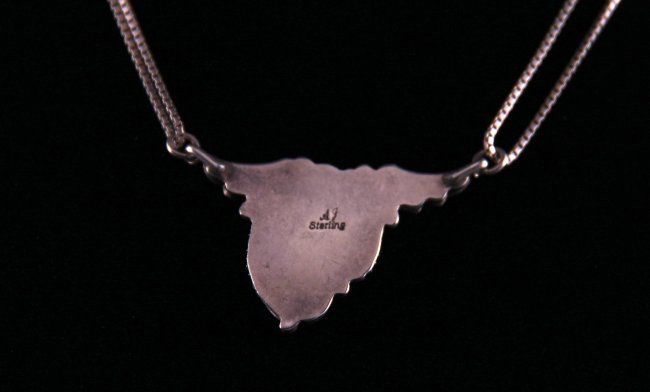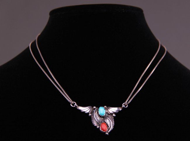 Native American coral and turquoise pendant sterling silver necklace signed "AJ". (Size: See last photo for measurement.) Photos are part of the description representing the condition report. Pangaea Auctions urges Bidder's to view all attached photos.