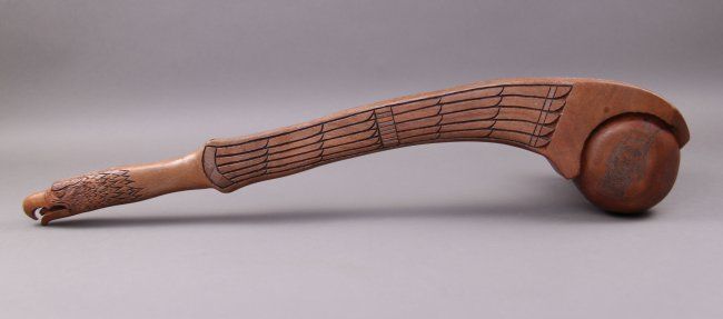 Native American engraved ceremonial club, signed by artist. Commonly referred to a s a "Slave Killer". Beautiful Eagle head with Indian Chief engravings. Private collection of Joe Dan Osceola. Comes with Certificate of Authenticity signed by Joe Dan Osceola. Size: 24" x 6" x 3"