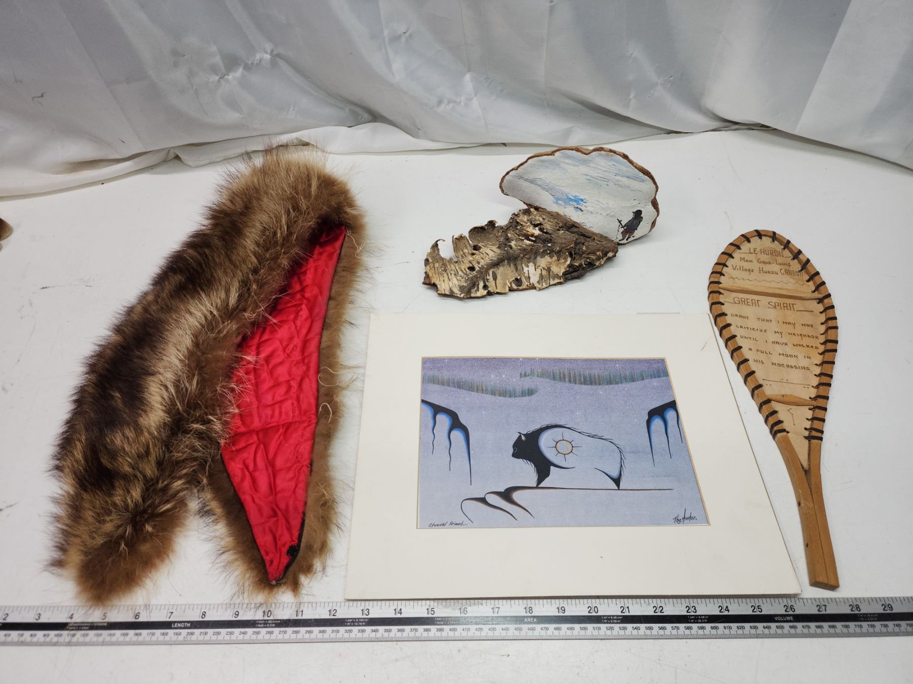 Painted mushroom, Great Spirit snowshoe, "Eternal Friend" painting from Northern Lights Casino