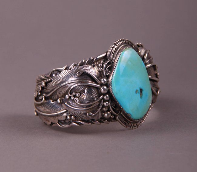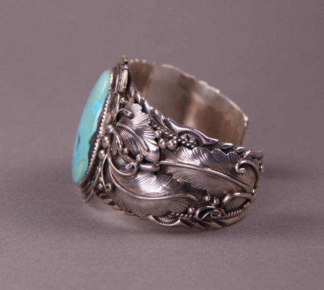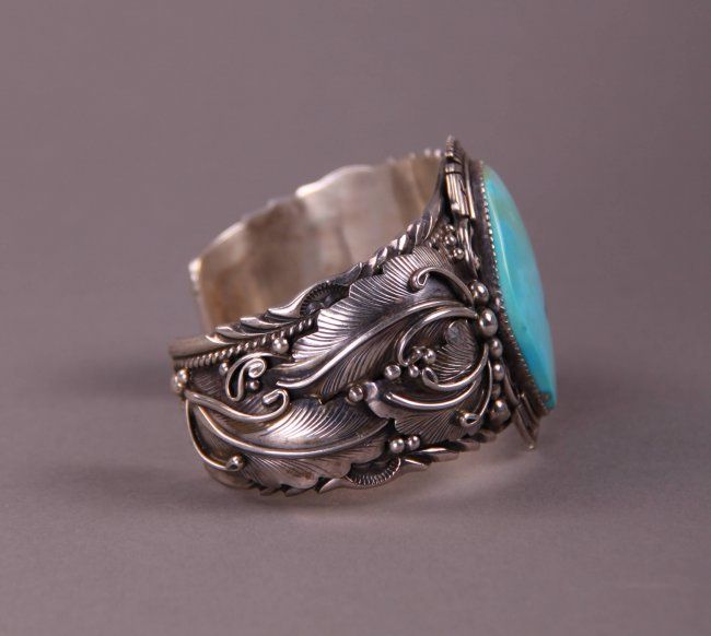 Native American large Silver and Turquoise stone bracelet with turquoise stone. X-ray Silver tested. (Size: See last photo for measurement.)