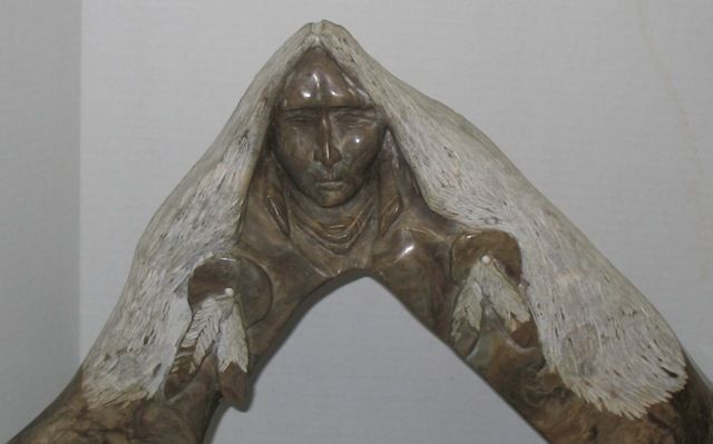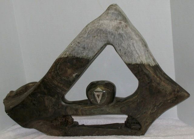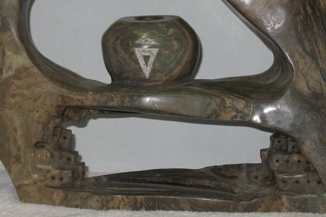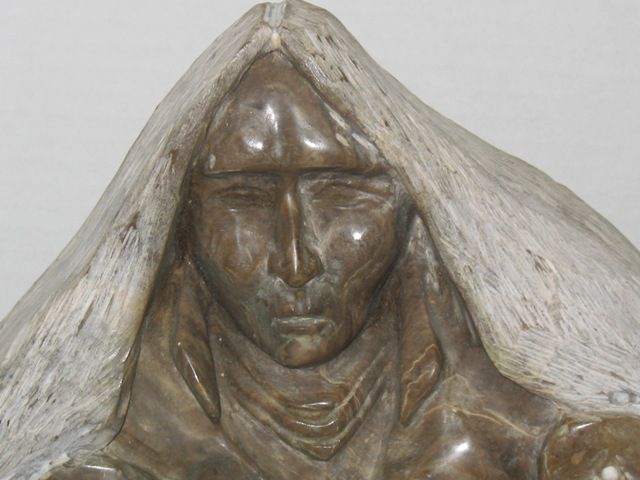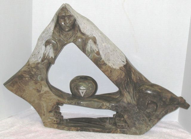 Americana scenic figural (approx. 28"l. x 19"h. x 4"w.) with an Indian head atop, a bear on one side & cliff dweller. Unsigned. Please read our terms of sale.