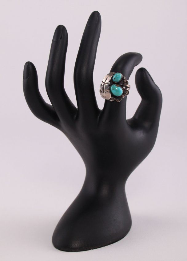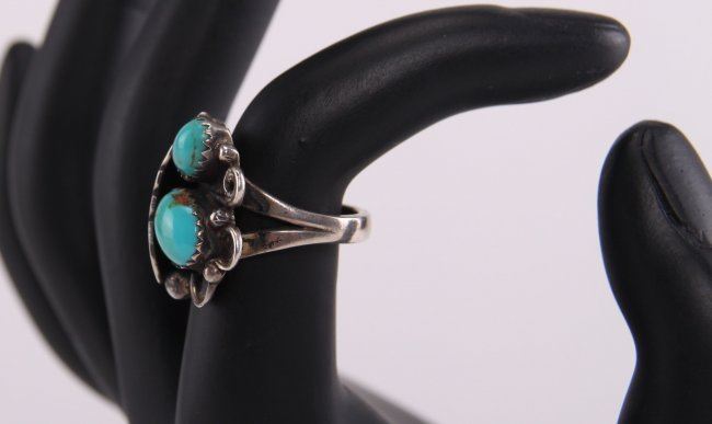 Native American sterling silver and turquoise ring. Ring Size: 6.5. Photos are part of the description representing the condition report. Pangaea Auctions urges Bidder's to view all attached photos.