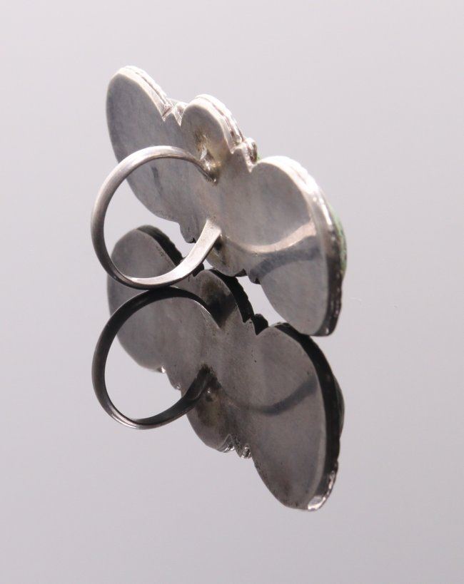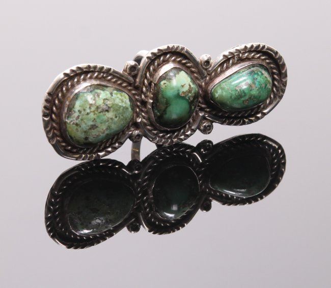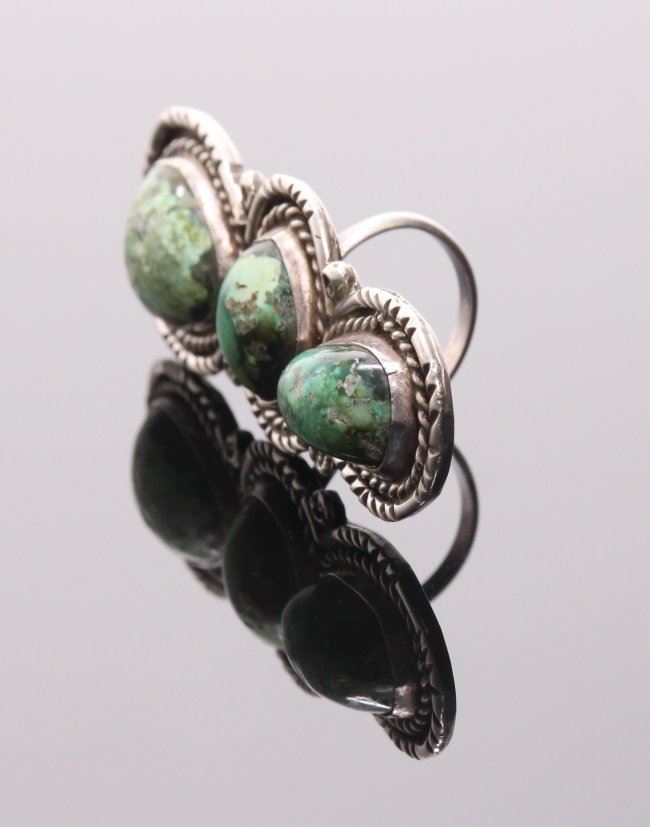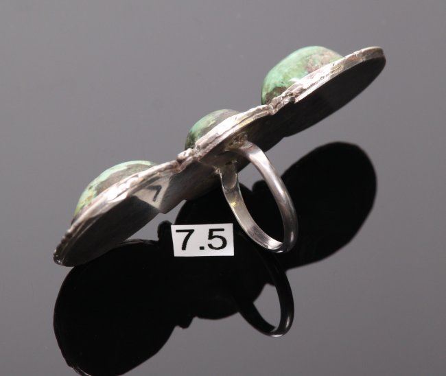 Native American sterling silver ring with a triple green turquoise stone setting. Ring Size: 7.5 SIZE: see attached ruler photo. Photos are part of the description representing the condition report and can be used for authentication prior to the sale date. Pangaea Auctions urges Bidder's to view all attached photos in detail.