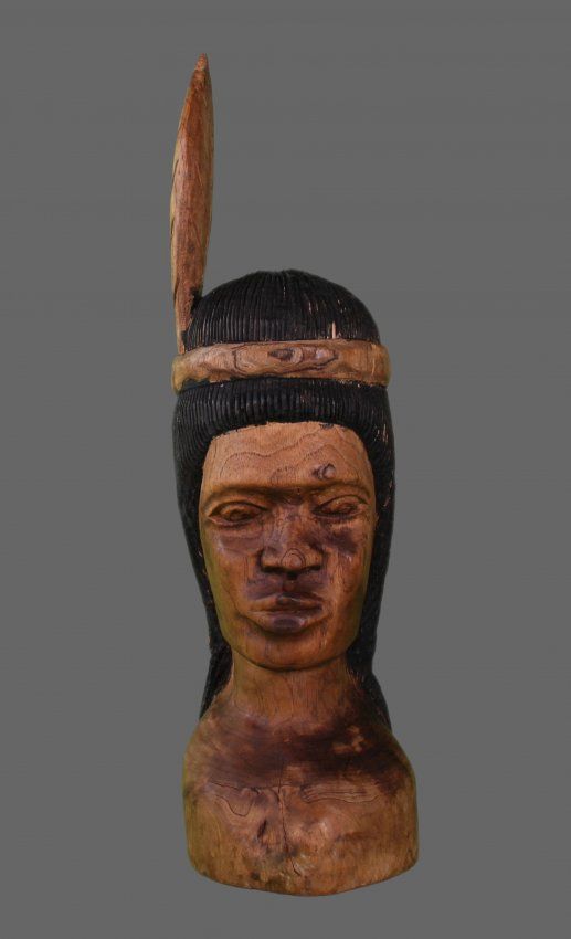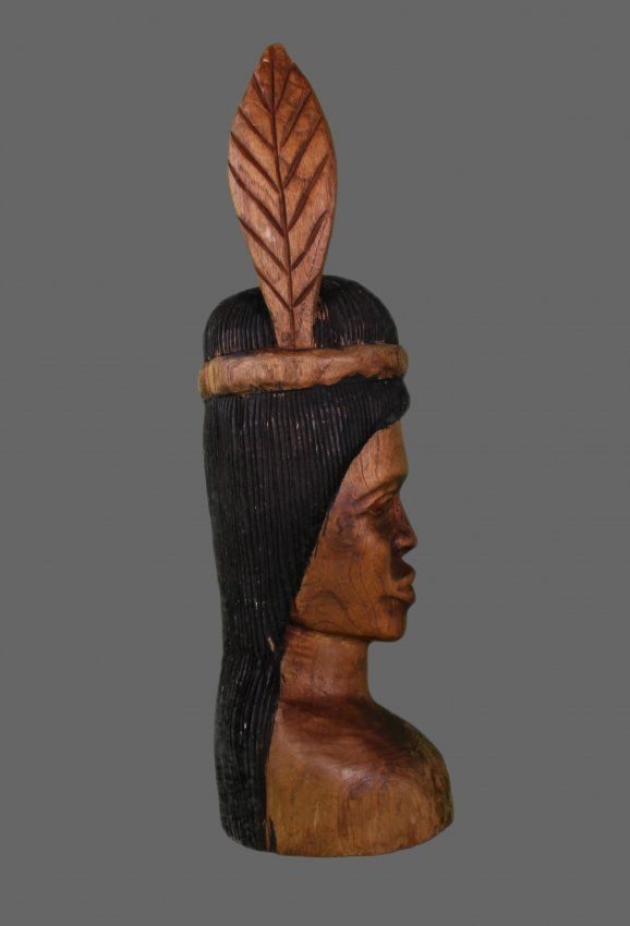 Native American wood carving of Warrior (Size: See Last Photo for Measurements)