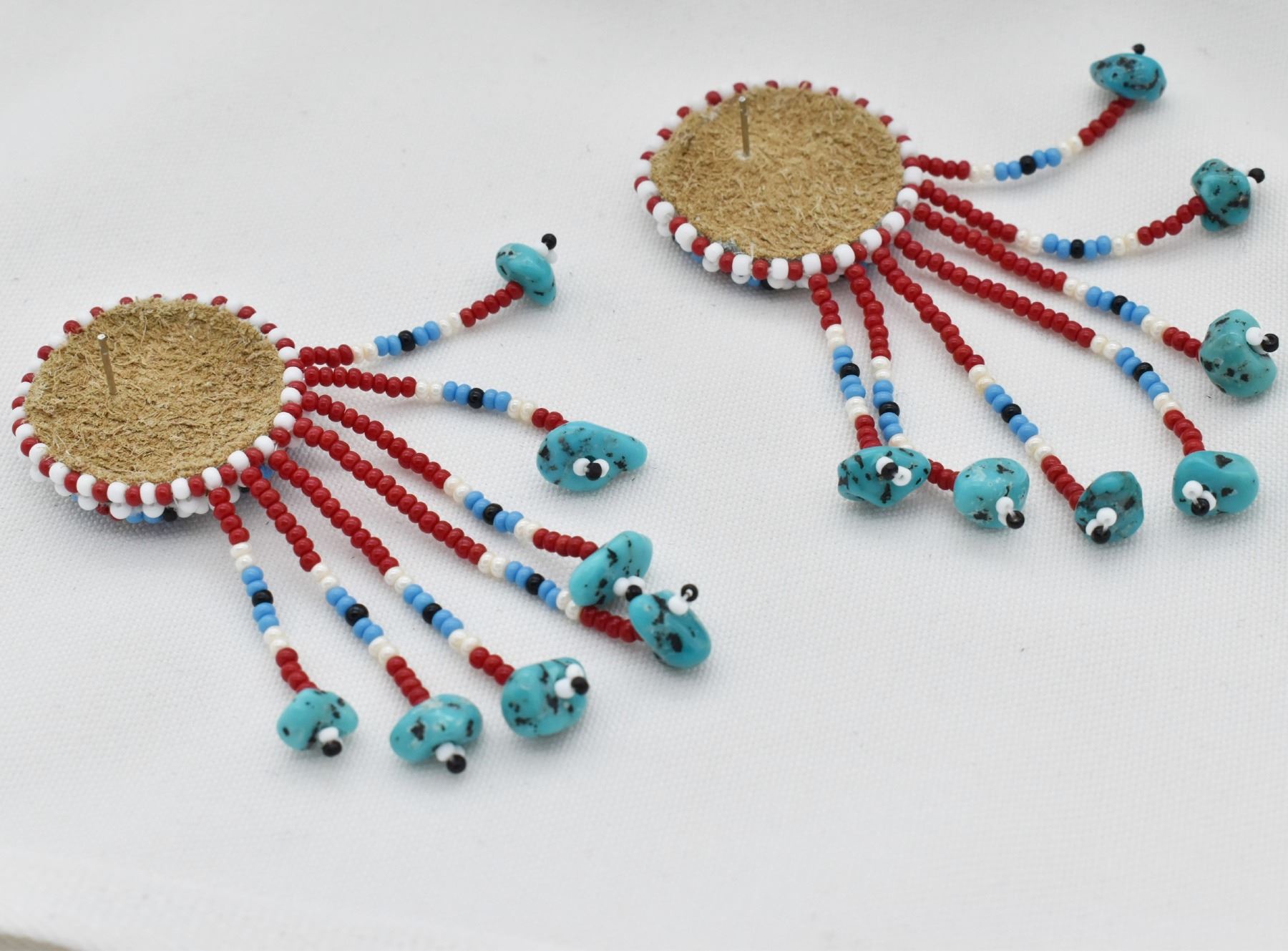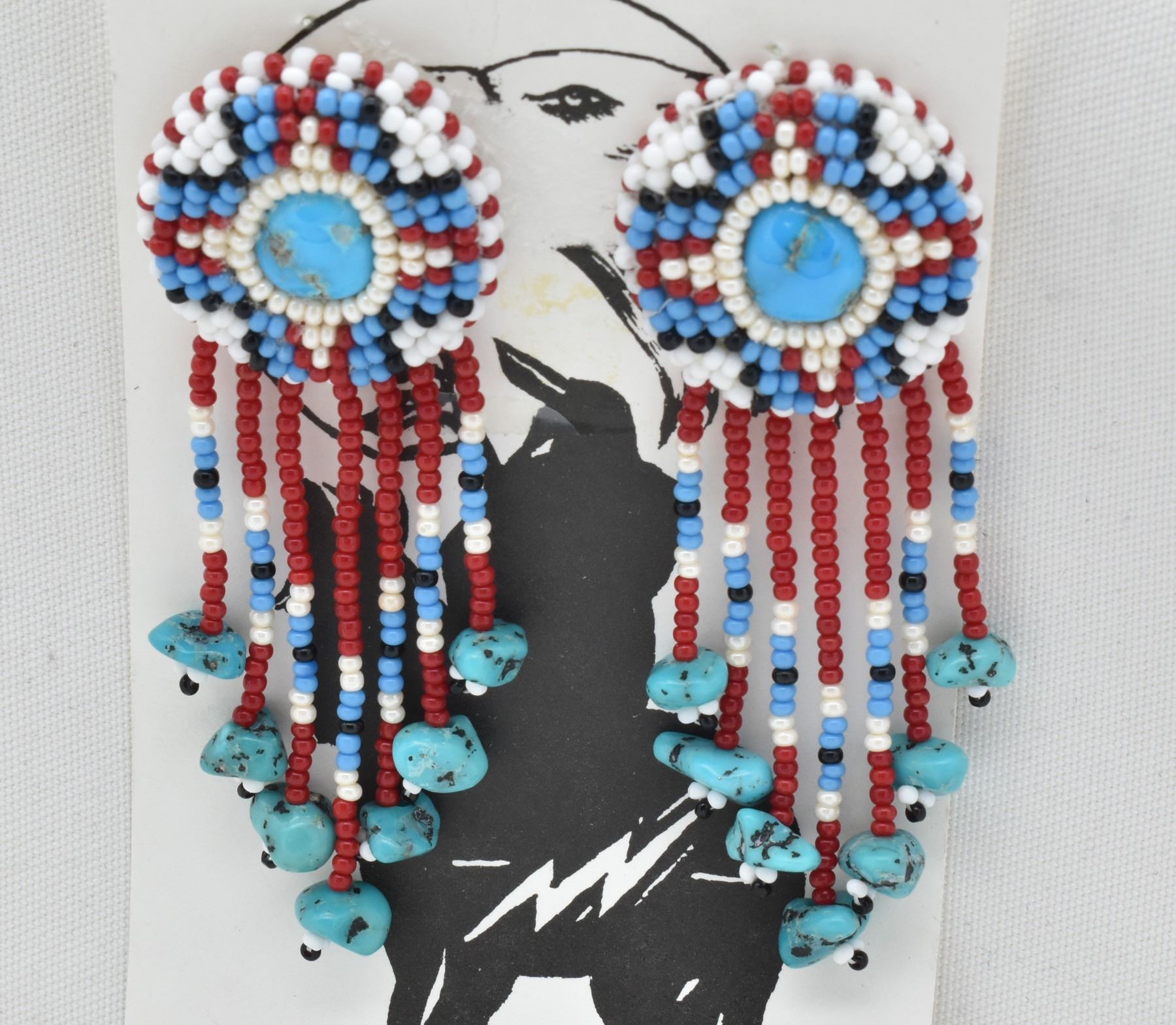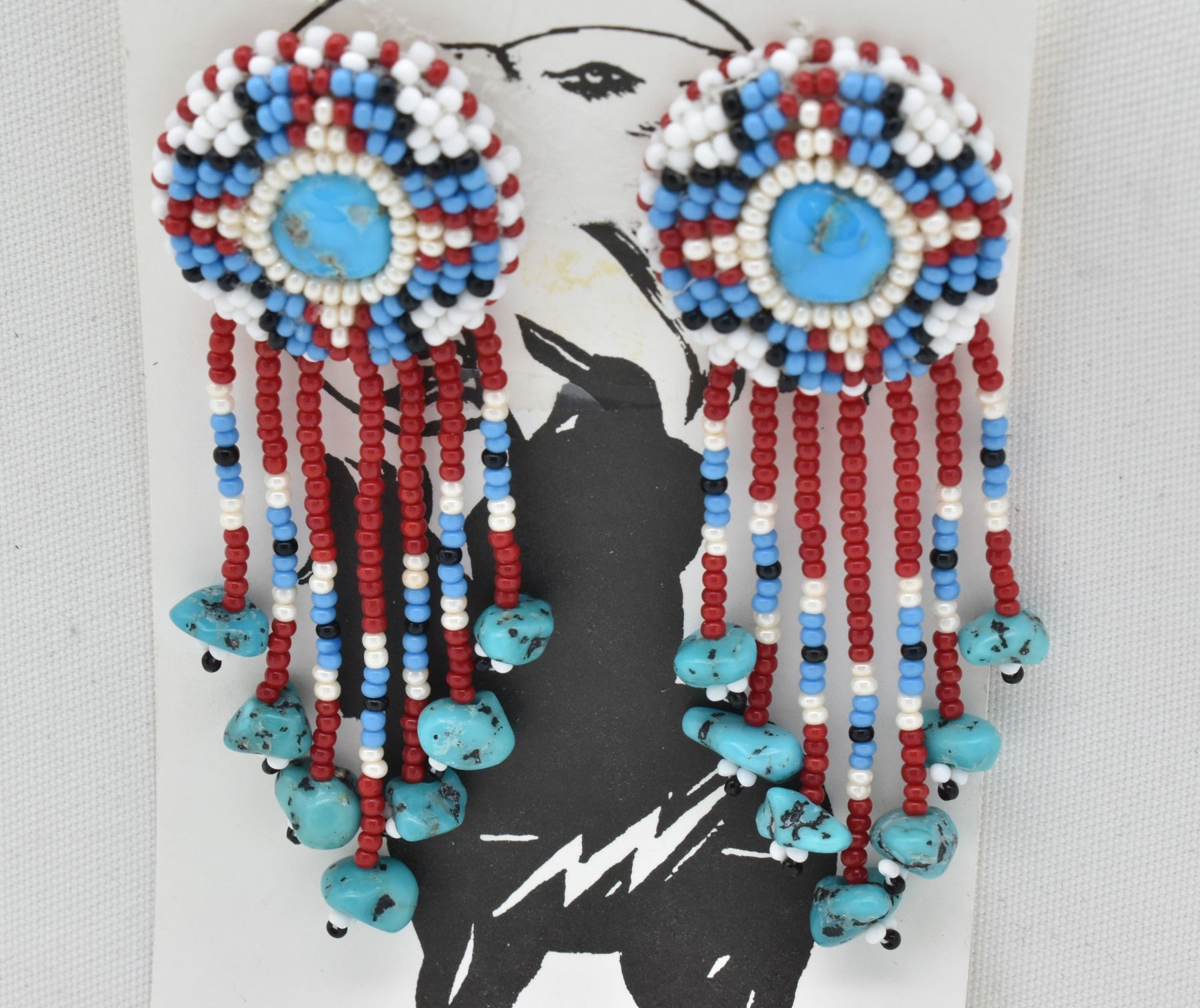 Native American Navajo Bead and Turquoise Earrings by Melinda Largo, measure 3"L x 1"W