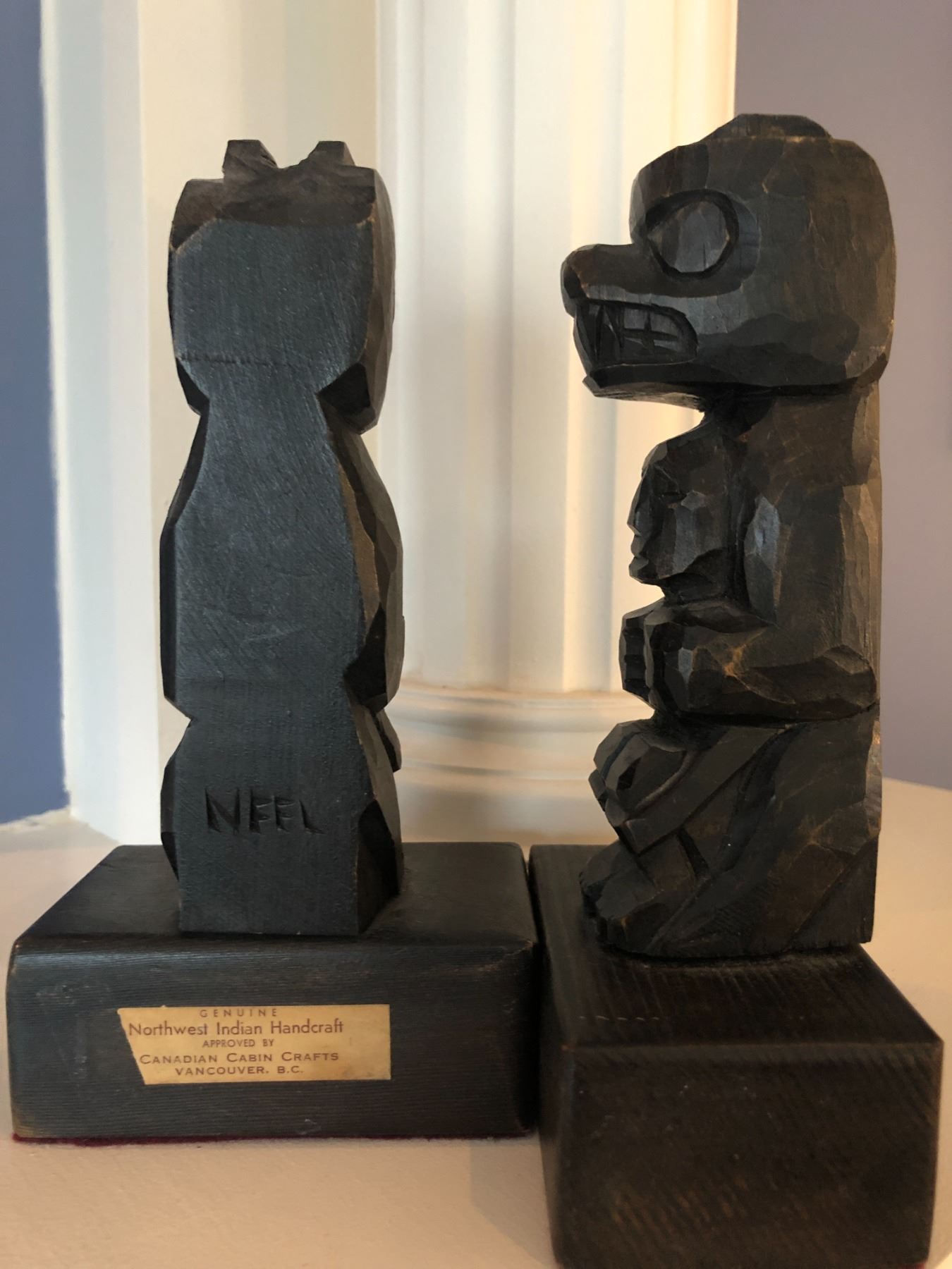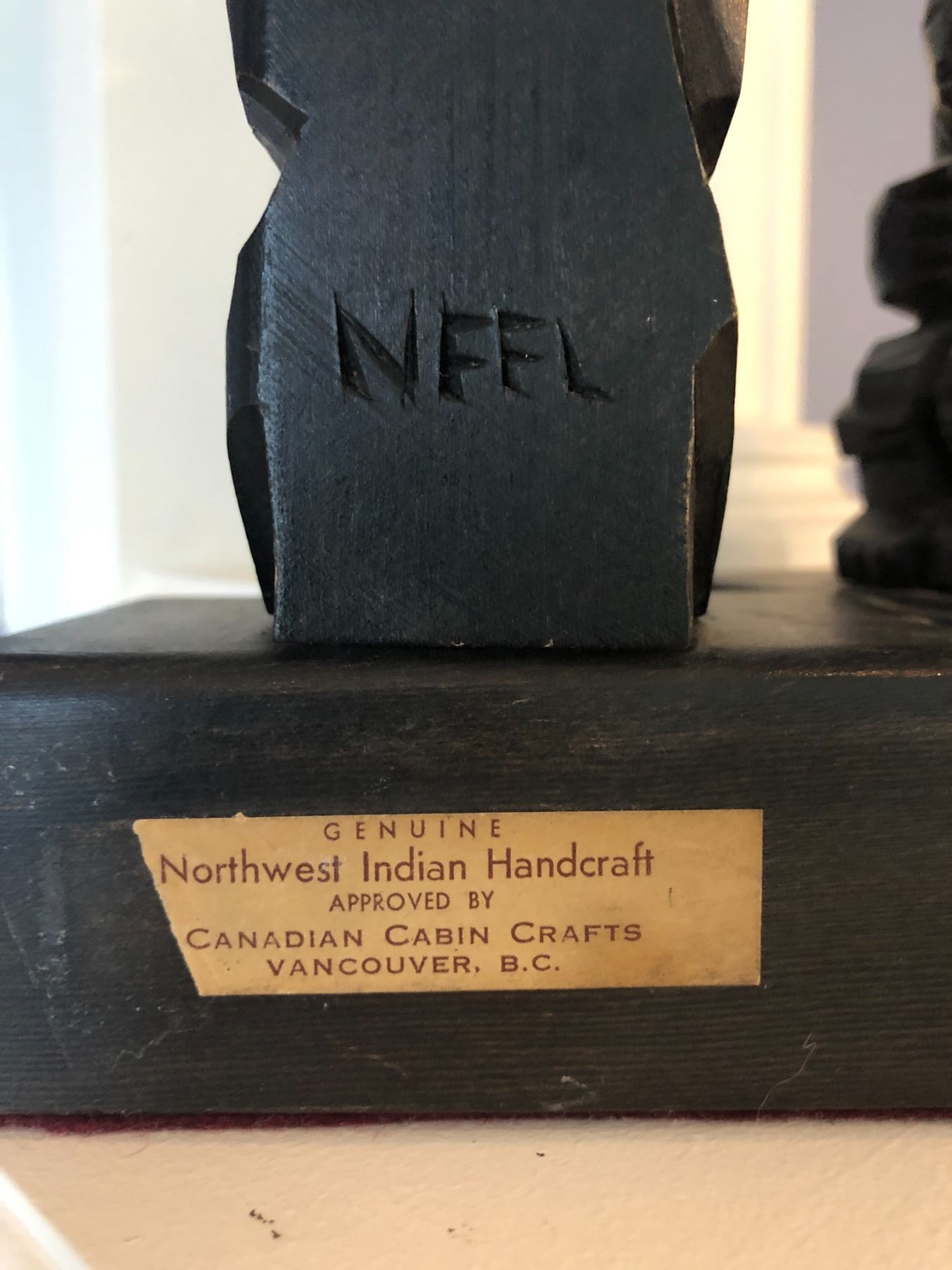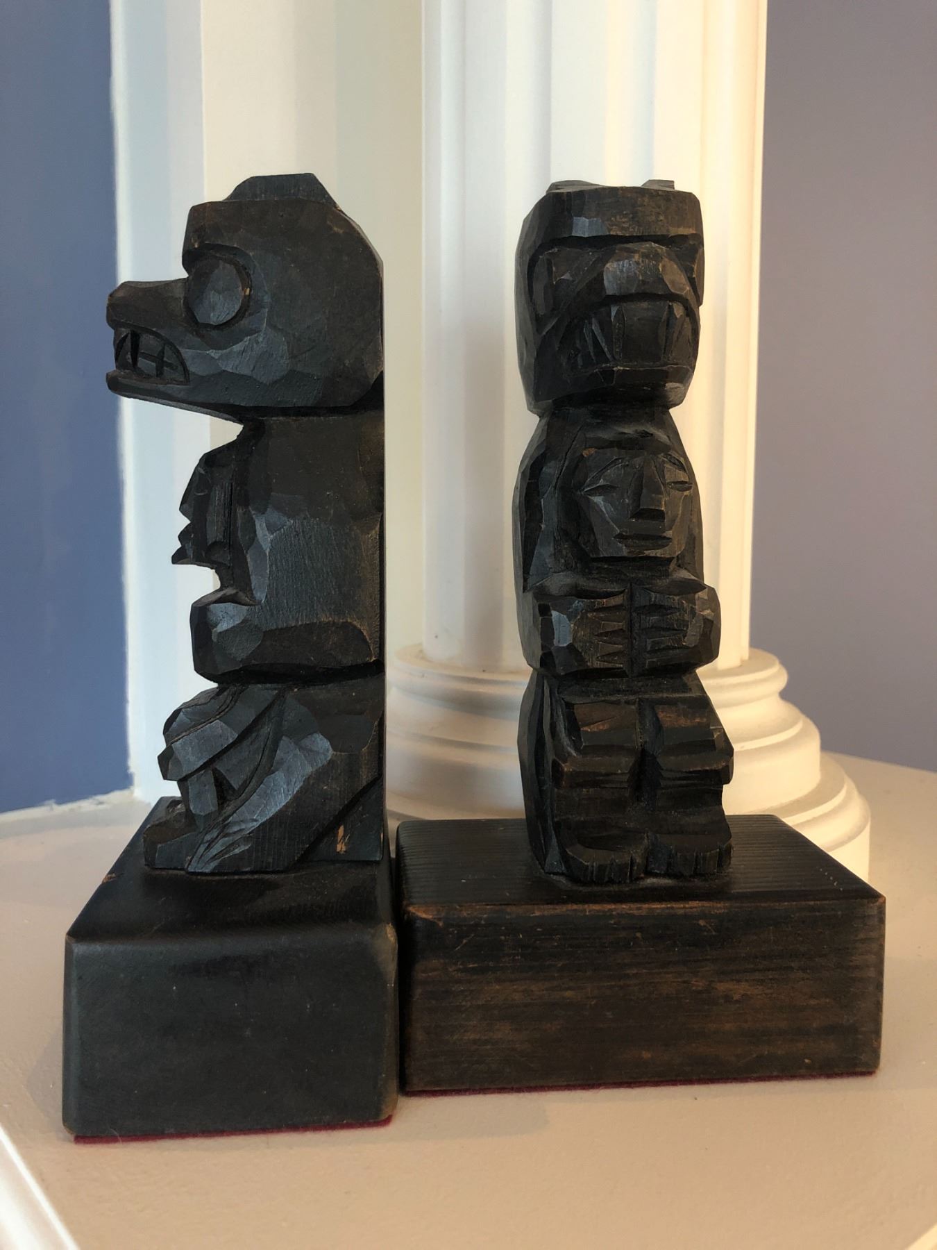 Genuine Northwest Indian Handcraft - approved by Canadian Cabin Crafts NFFL. 7 3/4 H x 4" W x 2.5" D Each bookend weight 1lb 2 ounces