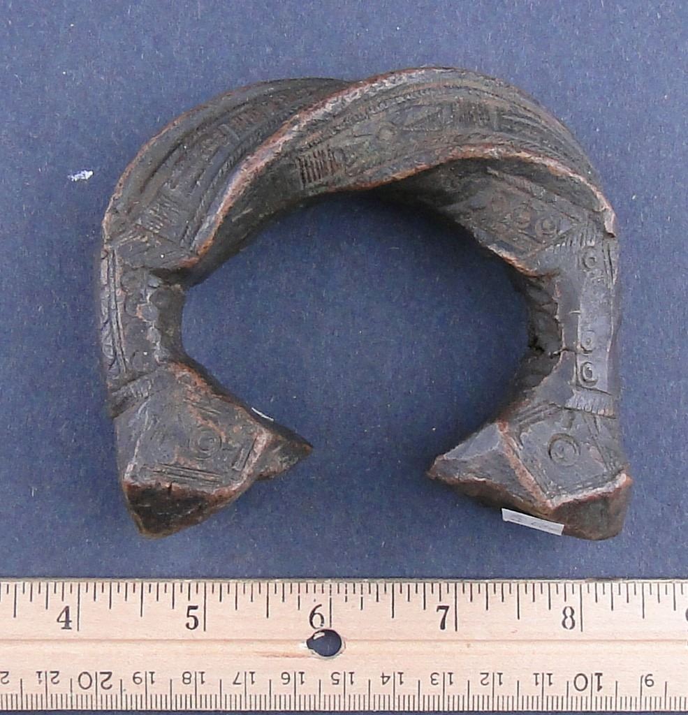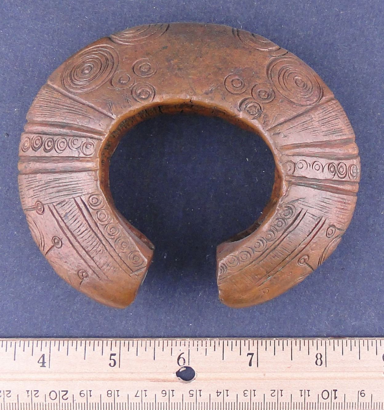 Description: A weighty copper bracelet, native-made and highly decorated, plus a native twisted manilla, equally ornate. Both illustrated in NNP edition, https://nnp.wustl.edu/library/book/541824?page=339, lower two on left.
