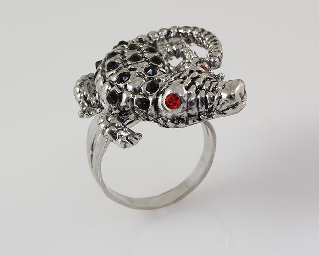 Native Inspired Fashion Jewelry Ring **|**|** Antique Look Crocodile Adjustable Ring with black crystal rhinestone Fashion Jewelry ; MSRP: $0