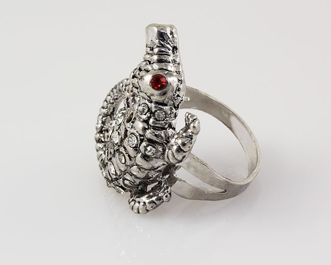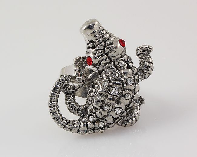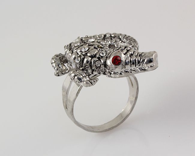 Native Inspired Fashion Jewelry Ring **|**|** Antique Look Crocodile Adjustable Ring with crystal rhinestone Fashion Jewelry ; MSRP: $0