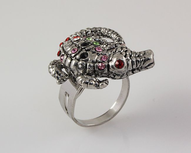 Native Inspired Fashion Jewelry Ring **|**|** Antique Look Crocodile Adjustable Ring with multi-color crystal rhinestone Fashion Jewelry ; MSRP: $0