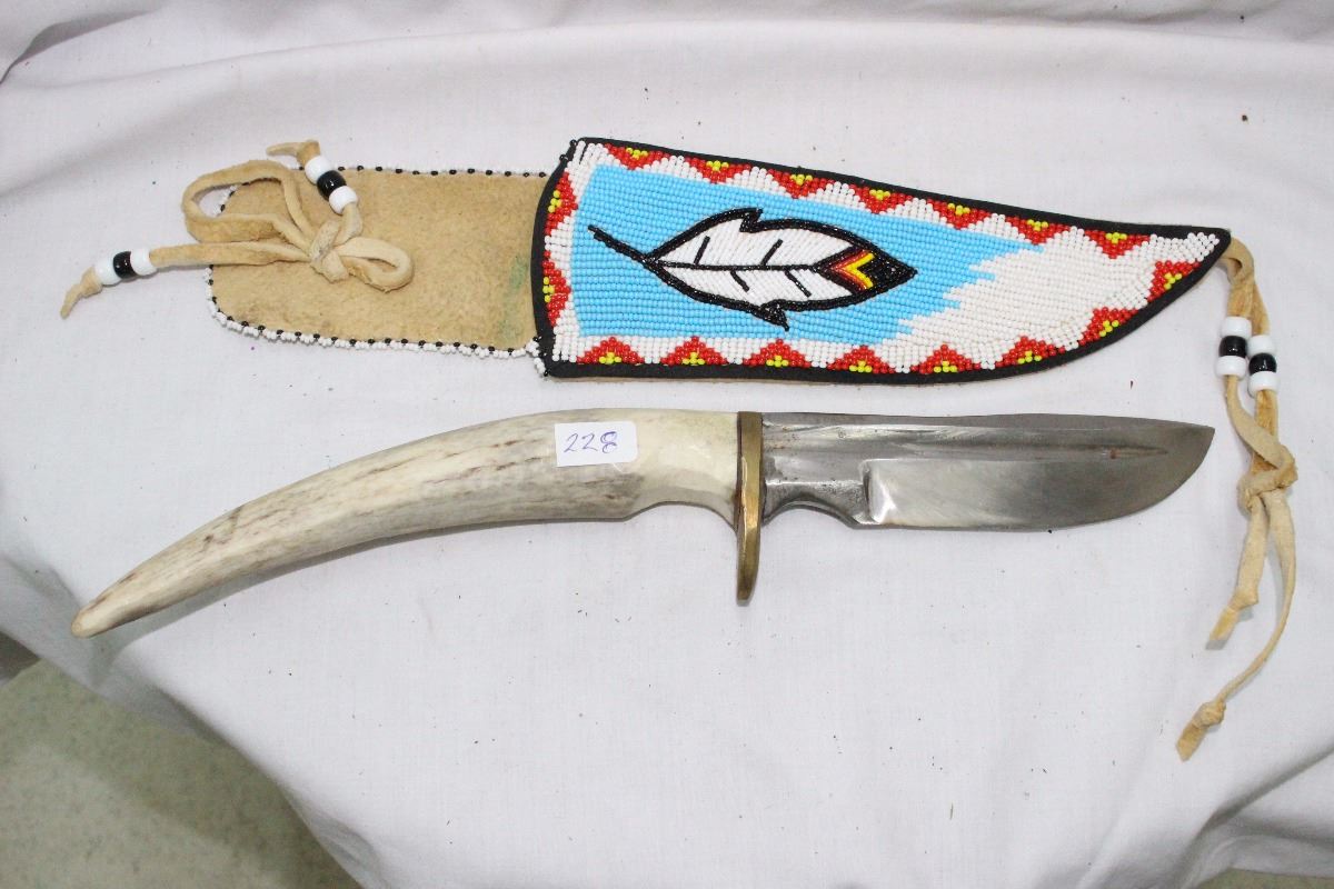 Native Made Knife Antler Handle - Beautiful Beadwork Sheath