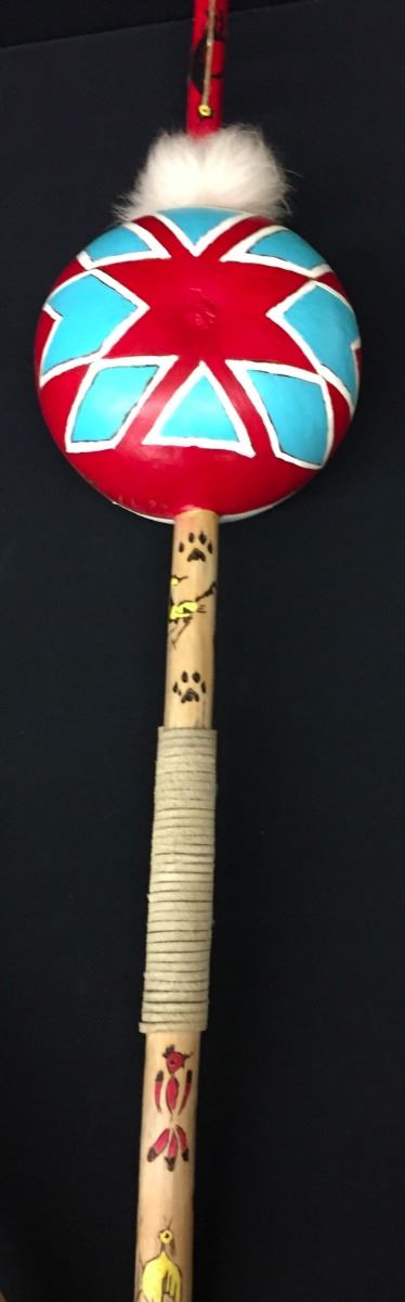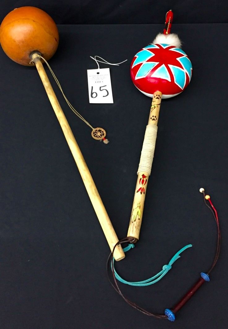 Each of these handmade gourd rattles are just under 2 feet in over all length. Good vintage condition. Please look closely at the pics as they are an important part of our description. Shipping: There will be a $7 handling / packaging fee for shipping this lot. The actual cost of postage will be added on top of that.