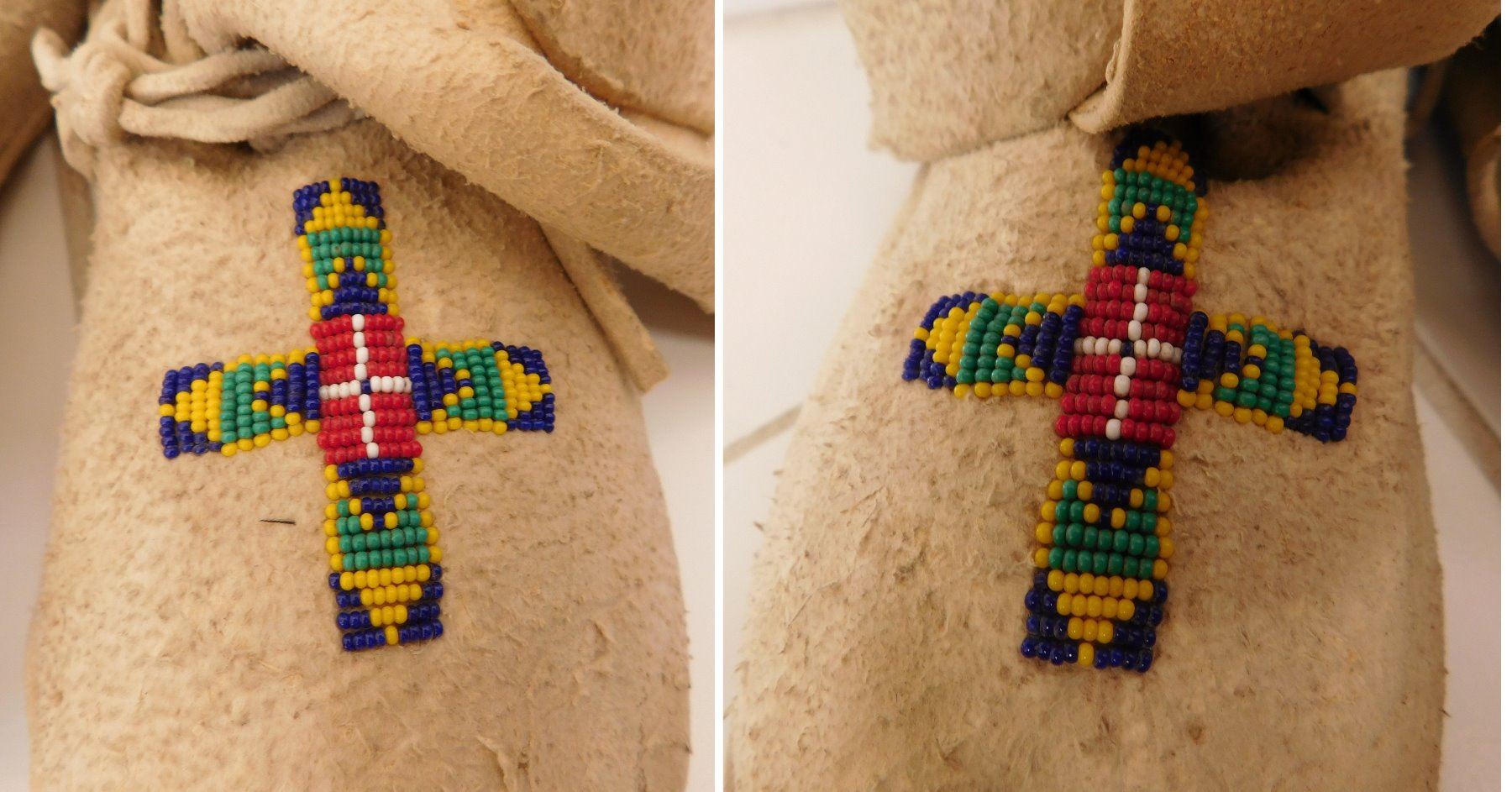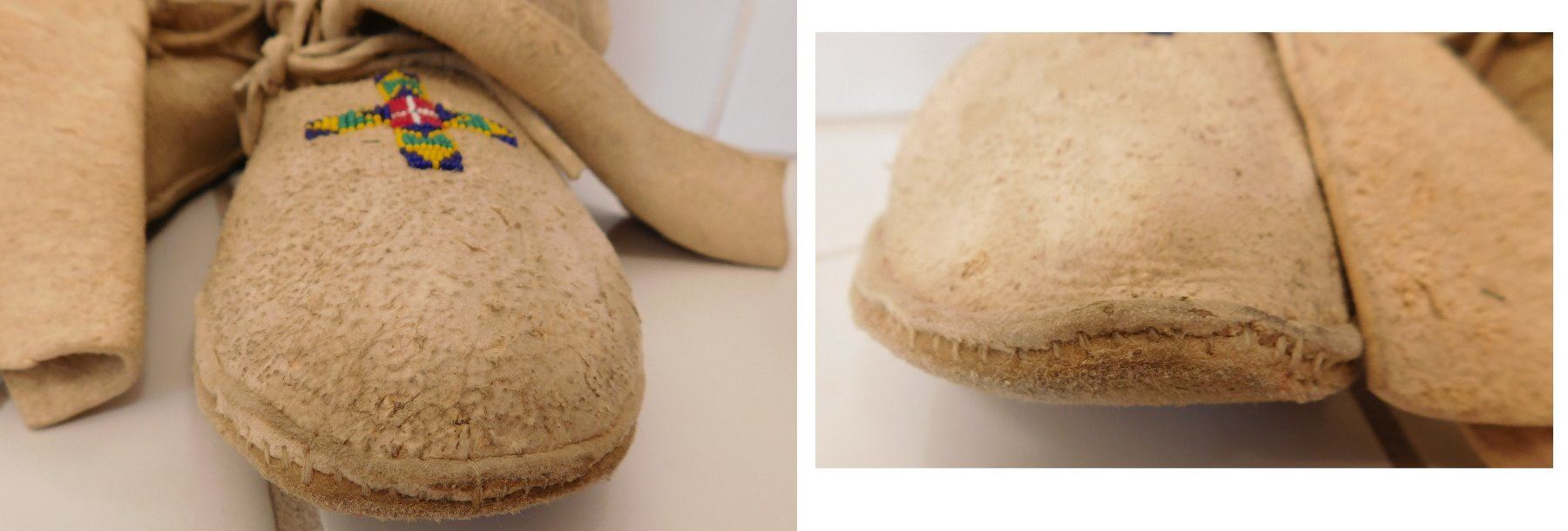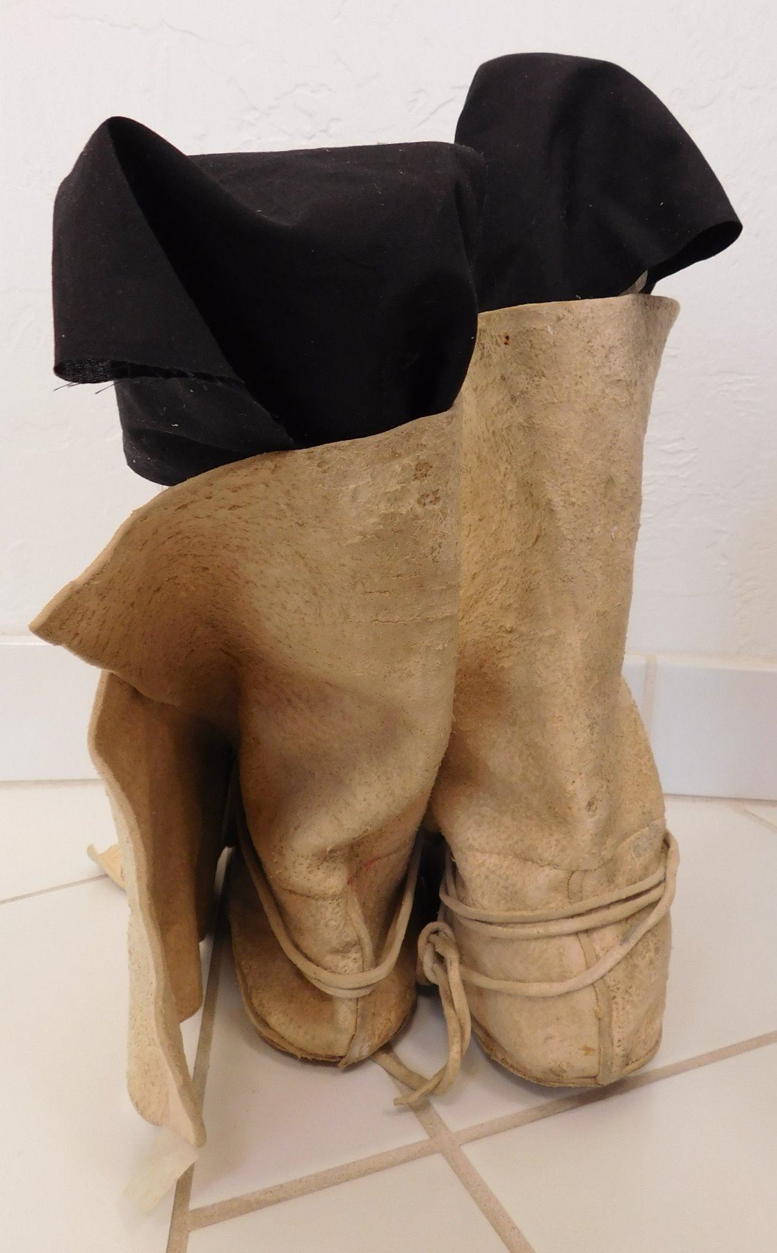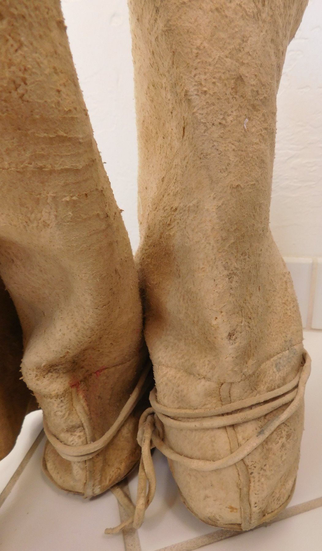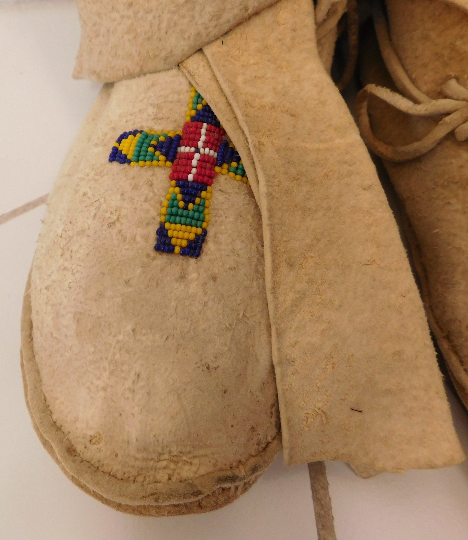 Native Tanned Sioux Hightop Beaded Moccasins, c. 1950s. Made of native tanned leather, the items measure approx. 3" x 10" x 10" tall each. Sioux, Dakotas. Condition: Little to no wear, see images. Shipping: $24.50 w/insurance and signature.