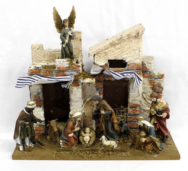 Nativity Scene with sound, plays Silent Night, measures 6'' X 15'' X 17''